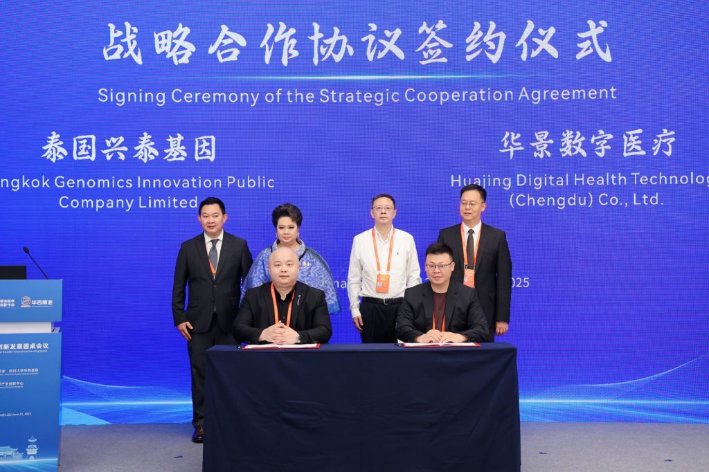 นายเสี่ยวฮาน หวาง รองประธานเจ้าหน้าที่บริหาร บริษัท แบงคอกจีโนมิกส์อินโนเวชั่น (BKGI) และ Mr. Gao Yunlong Chairman of Huajing Digital Medical Technology (Chengdu) Co., Ltd ลงนามความร่วมมือด้านการวิจัยและพัฒนาเทคโนโลยีปัญญาประดิษฐ์ (AI) ในการวางกรอบเชิงยุทธศาสตร์ที่สนับสนุนการวิจัย นวัตกรรม และการขับเคลื่อนเทคโนโลยี AI อย่างยั่งยืน โดยเฉพาะในมิติที่เกี่ยวข้องกับสาธารณสุข การเรียนรู้ และการสร้างบุคลากรด้านเทคโนโลยีในประเทศไทย