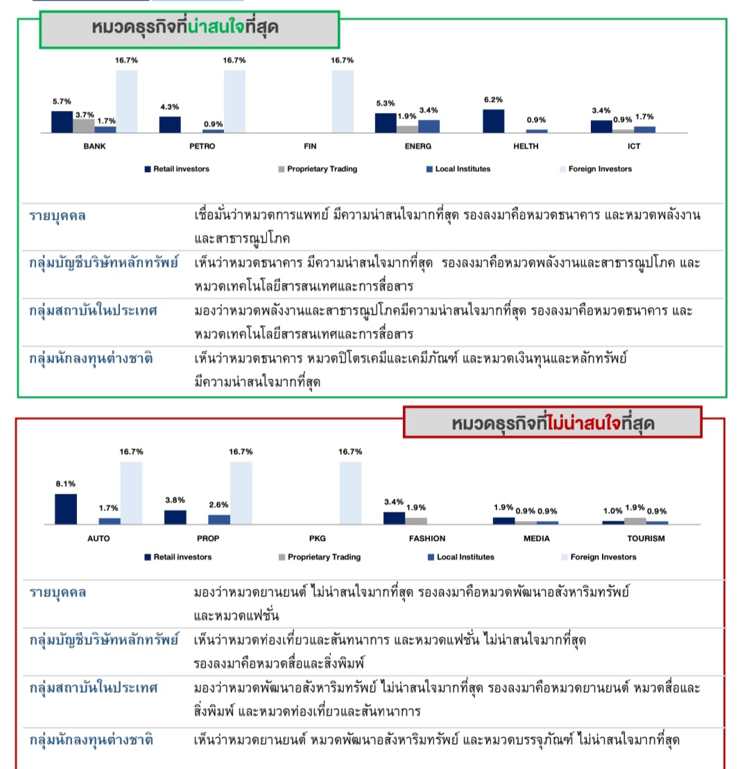 ความเชื่อมั่นกลุ่มนักลงทุนบุคคล กลุ่มนักลงทุนสถาบัน และนักลงทุนต่างประเทศอยู่ในเกณฑ์ “ซบเซา” ในขณะที่ กลุ่มบัญชีบริษัทหลักทรัพย์ อยู่ในเกณฑ์ “ซบเซาอย่างมาก”