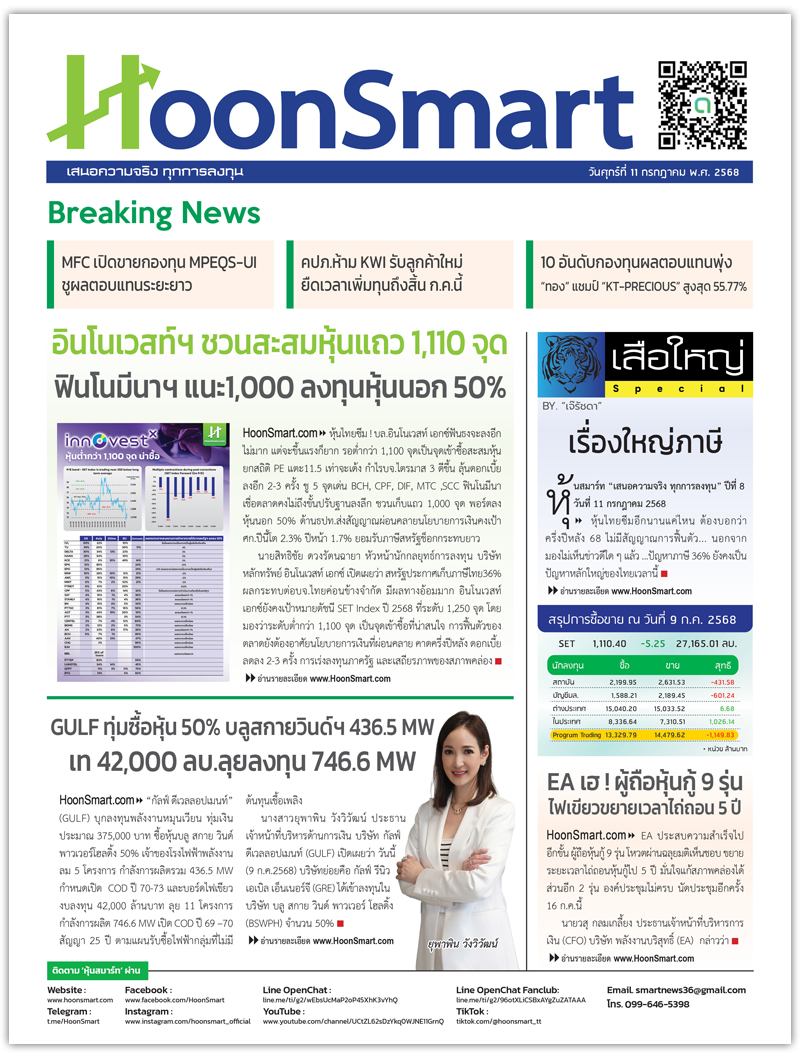 หนังสือพิมพ์ HoonSmart ปีที่ 8 ฉบับวันที่ 11 ก.ค.2568 10/07/2025 16:0010/07/2025 17:21Ple HoonsmartBreaking News Facebook iconFacebookTwitter iconTwitterLINE iconLine