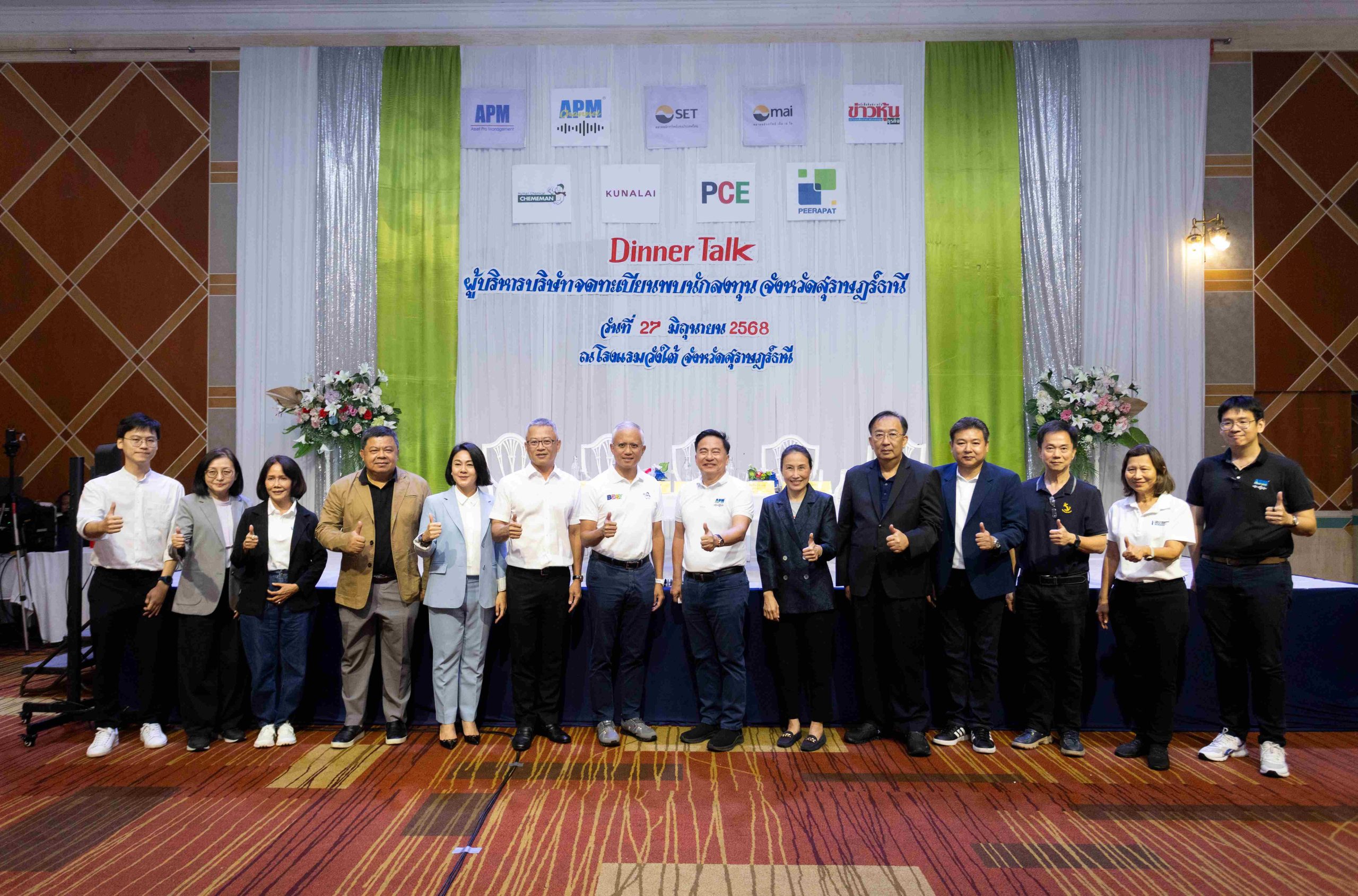 ม.ล.จันทรจุฑา จันทรทัต (ที่ 7 จากซ้าย) ประธานกรรมการ บริษัท เคมีแมน (CMAN) ร่วมถ่ายภาพกับ ดร.สมภพ ศักดิ์พันธ์พนม (ที่ 7 จากขวา) ประธานกรรมการ บริษัท แอสเซท โปร แมเนจเม้นท์ (APM) และผู้บริหารจากบริษัทจดทะเบียนที่เข้าร่วมงานสัมมนาสัญจร “ผู้บริหารบริษัทจดทะเบียนพบนักลงทุนจังหวัดสุราษฎร์ธานี และจังหวัดใกล้เคียง”