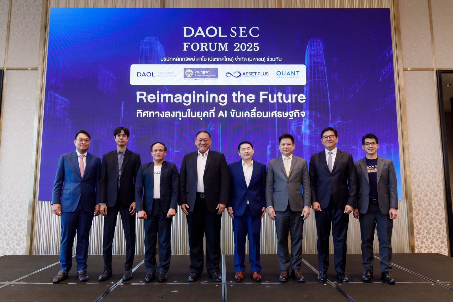 บริษัทหลักทรัพย์ ดาโอ (ประเทศไทย) จำกัด (มหาชน) ร่วมกับ บริษัทหลักทรัพย์จัดการกองทุน (บลจ.) กรุงศรี จำกัด บริษัทหลักทรัพย์จัดการกองทุน แอสเซท พลัส จำกัด บริษัทหลักทรัพย์จัดการกองทุน ดาโอ จำกัด และ บริษัท ควอนท์กรุ๊ป (1998) จำกัด จัดงานสัมมนาการลงทุน“DAOL SECURITIES FORUM 2025: Reimagining the Future ทิศทางลงทุนในยุคที่ AI ขับเคลื่อนเศรษฐกิจ” เพื่ออัปเดตแนวโน้มเศรษฐกิจ เทคโนโลยีการลงทุน รวมถึงแนวทางการบริหารจัดการความมั่งคั่งในระดับครอบครัว โดยได้รับเกียรติจากผู้บริหารและผู้เชี่ยวชาญในแวดวงการเงินและการลงทุน มาร่วมแบ่งปันข้อมูลและมุมมองที่เป็นประโยชน์