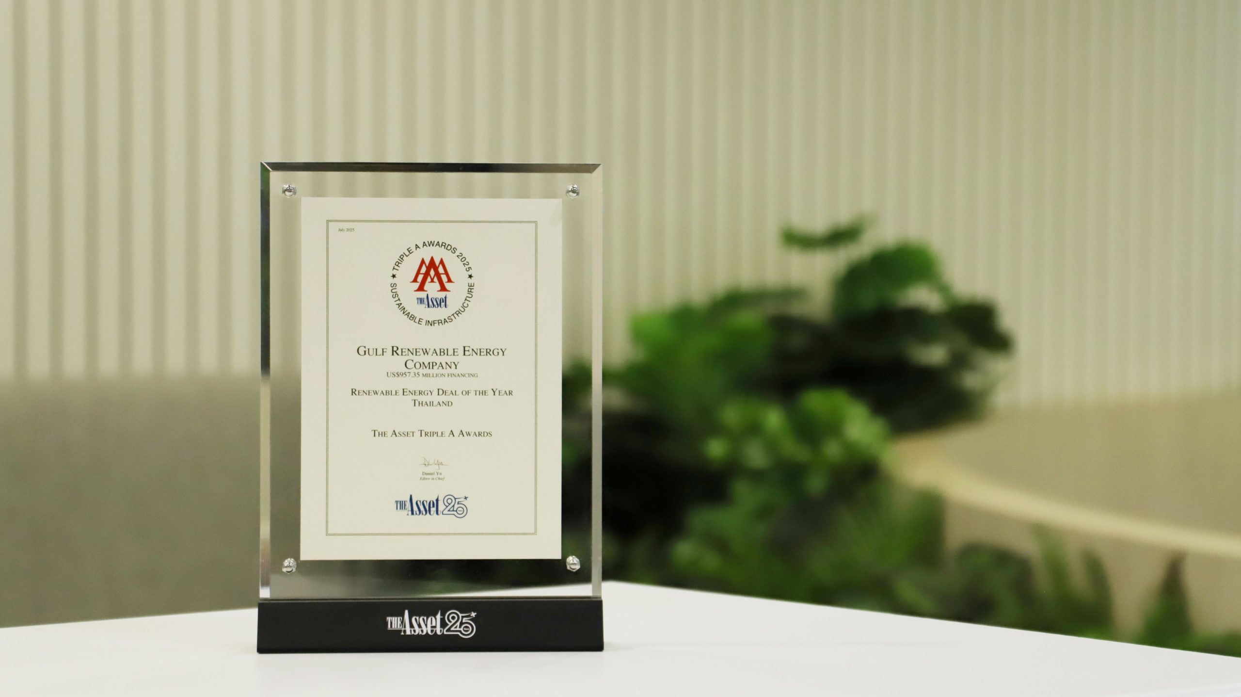 รางวัล Renewable Energy Deal of the Year – Thailand แสดงถึงความสำเร็จของ GULF ในการจัดหาเงินกู้ เพื่อพัฒนาโครงการโรงไฟฟ้าพลังงานแสงอาทิตย์ 12 โครงการในประเทศไทย รวมกำลังการผลิตตามสัญญา 649 เมกะวัตต์ ซึ่งทยอยเปิดดำเนินการเชิงพาณิชย์ปีช่วง 2567-2568