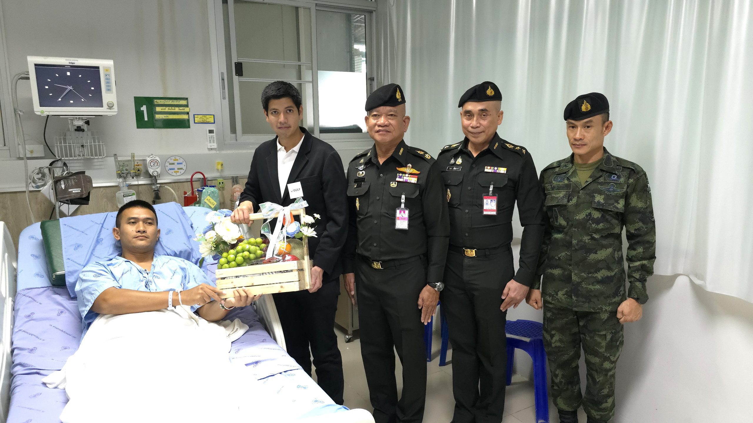 นายสิตมน รัตนาวะดี ผู้ช่วยรองประธานเจ้าหน้าที่บริหาร GULF กล่าวว่า จากการติดตามเหตุการณ์ที่เกิดขึ้น ผมรู้สึกเห็นใจเหล่าพี่ ๆ ทหารแนวหน้าเป็นอย่างมาก หลายท่านเป็นหัวหน้าครอบครัว และมีคนที่รักรออยู่ข้างหลัง ซึ่งผมเข้าใจสถานการณ์เหล่านี้ดีเพราะคุณปู่ของผมก็เป็นทหารเช่นกัน และในวันนี้ได้มีโอกาสมาเยี่ยมทหารที่ได้รับบาดเจ็บ พร้อมพูดคุยกับครอบครัวของพวกเขา ในฐานะคนไทยด้วยกัน ผมรู้สึกอยากมีส่วนร่วมในการช่วยเหลือคนละไม้คนละมือ แม้เพียงเล็กน้อยก็ตาม