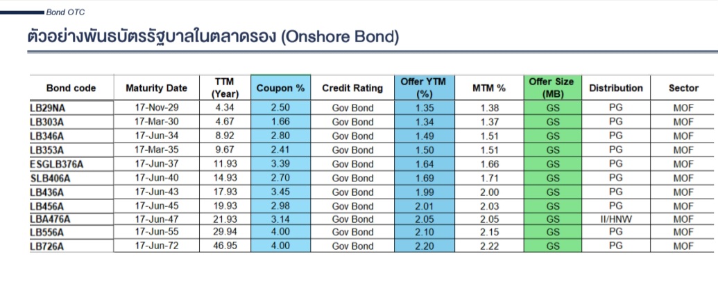 สำหรับ อายุยาวเกิน 36 ปี ไม่ต่ำกว่า 3.00% มา ณ ตอนนี้ อัตราผลตอบแทนของพันธบัตรรัฐบาลที่อายุยาวที่สุด 46 ปี (LB726A) ยังลงมาต่ำกว่า 2.30%