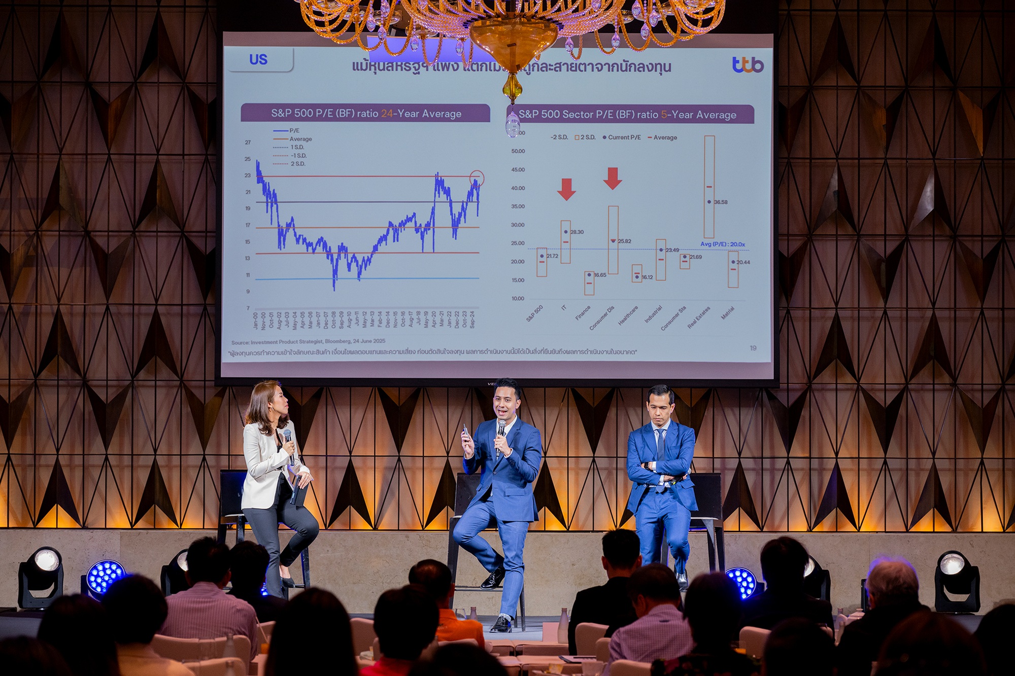 HoonSmart.com>> ทีเอ็มบีธนชาต (ทีทีบี) จัดเต็มทีมผู้เชี่ยวชาญด้านการลงทุน เปิดเวทีสัมมนา “ttb Investment Outlook 2/2025” ภายใต้ธีม “ความผันผวนยังคงอยู่แต่เราสู้ได้ด้วย Stay Invest” เพื่ออัปเดต Market Outlook ในครึ่งแรกของปี 2025 พร้อมวิเคราะห์ความผันผวนของตลาด เปิดมุมมองและทิศทางการลงทุนที่น่าสนใจในครึ่งหลังปี 2025 เพื่อสร้างโอกาสการลงทุนให้ตอบโจทย์ทุกเป้าหมายการเงิน ให้ลูกค้า Wealth สามารถนำไปประกอบการพิจารณาลงทุนในกองทุนต่าง ๆ และได้รับผลตอบแทนที่ดีจากการลงทุน เพื่อนำไปสู่การมีชีวิตทางการเงินที่ดีขึ้นทั้งในวันนี้และอนาคต