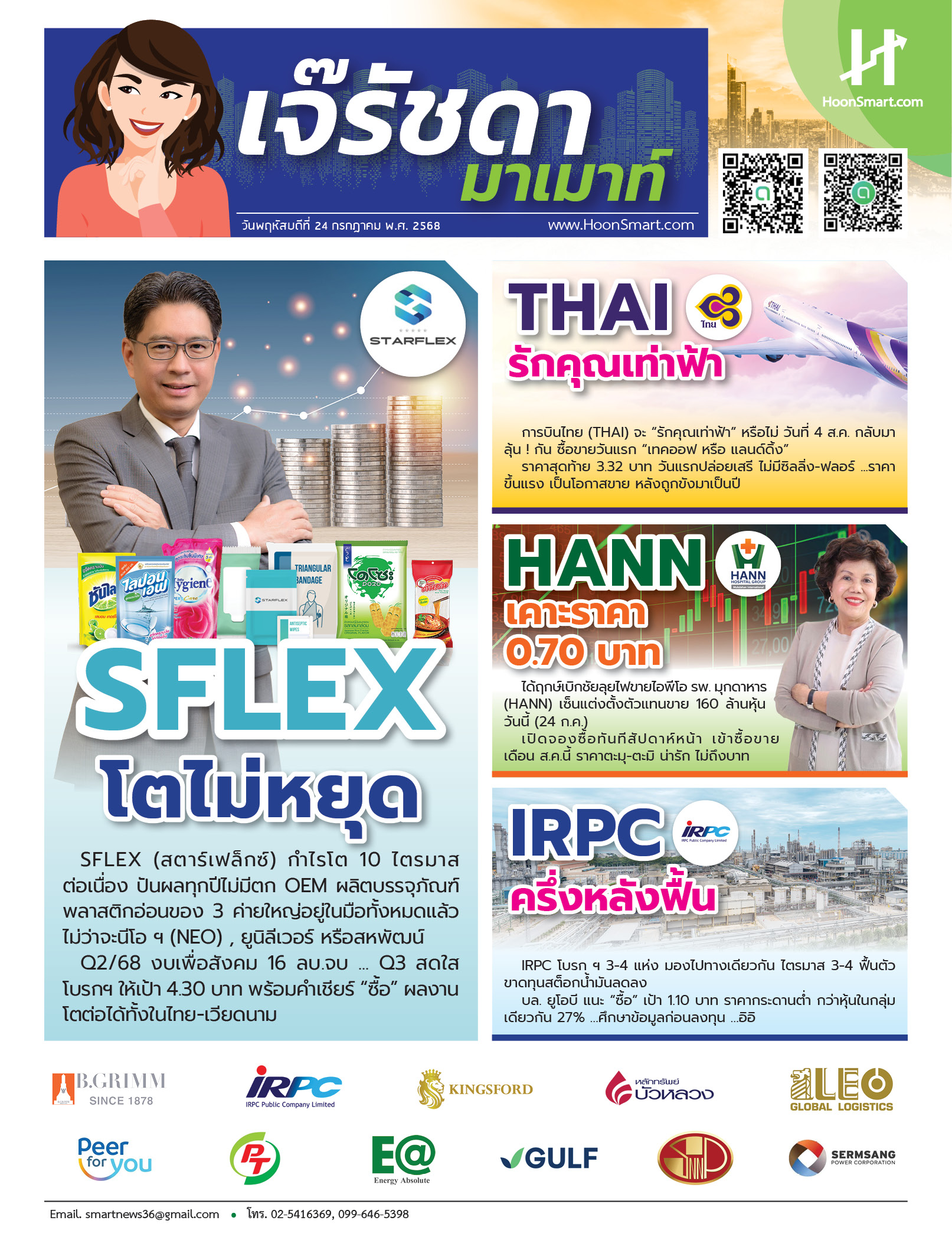 เจ๊รัชดา มาเมาท์ : SFLEX … โตไม่หยุด 24/07/2025 13:58Ple HoonsmartBreaking News, คอลัมนิสต์Exclusive News Facebook iconFacebookTwitter iconTwitterLINE iconLine