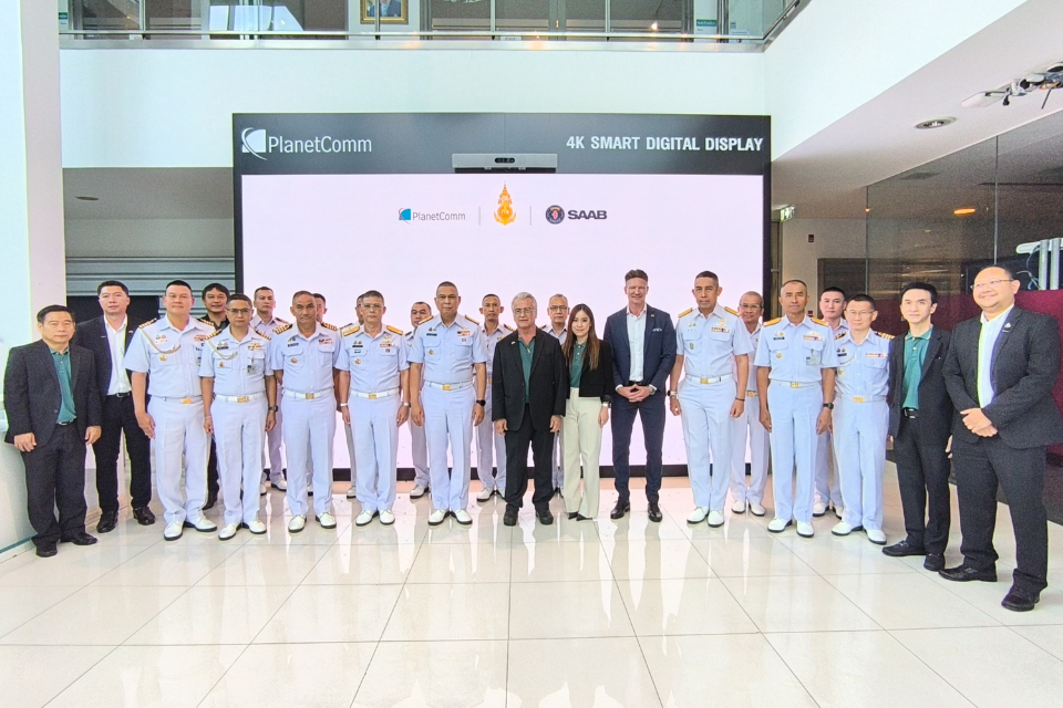 ทรีเวอร์ ทอมป์สัน (แถวหน้าที่ 8 จากขวา) รองประธานกรรมการบริหาร และคณะผู้บริหารบริษัท แพลนเน็ต คอมมิวนิเคชั่น เอเชีย  (PLANET)  ผู้นำด้านการให้บริการเทคโนโลยีดิจิทัลแบบครบวงจร นำทีม SAAB บริษัทชั้นนำระดับโลกด้านระบบป้องกันประเทศจากประเทศสวีเดน ในฐานะพันธมิตรทางธุรกิจ ร่วมให้การต้อนรับ พลเรือเอก ชลธิศ นาวานุเคราะห์ (แถวหน้าที่ 6 จากซ้าย) รองผู้บัญชาการทหารเรือ และคณะผู้แทนจากกองทัพเรือ (RTN) เนื่องในโอกาสเข้าเยี่ยมชมนวัตกรรมขั้นสูงด้านเทคโนโลยีป้องกันประเทศ