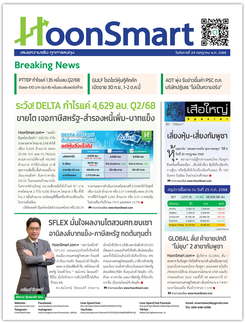 หนังสือพิมพ์ HoonSmart ปีที่ 8 ฉบับวันที่ 29 ก.ค.2568 28/07/2025 15:31Ple HoonsmartBreaking News Facebook iconFacebookTwitter iconTwitterLINE iconLine