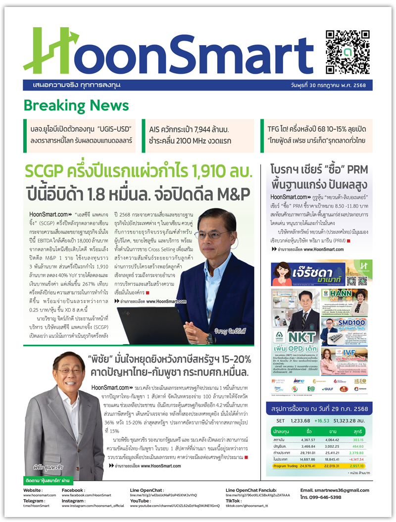 หนังสือพิมพ์ HoonSmart ปีที่ 8 ฉบับวันที่ 30 ก.ค.2568 29/07/2025 19:59Ple HoonsmartBreaking NewsExclusive News Facebook iconFacebookTwitter iconTwitterLINE iconLine