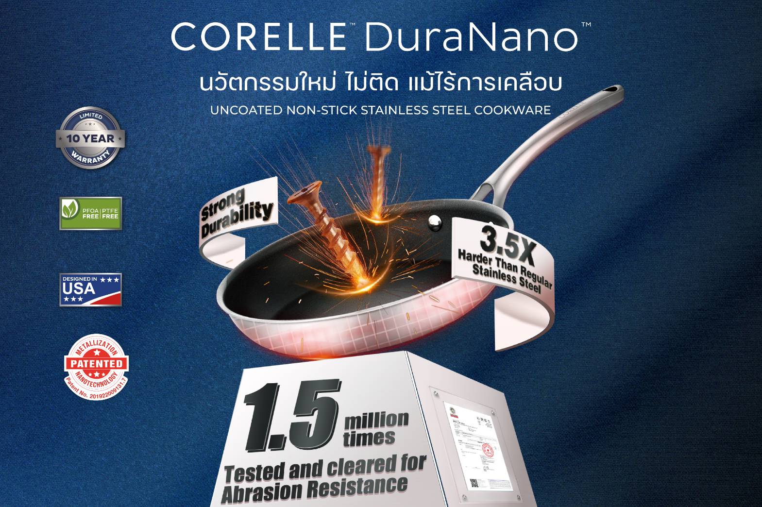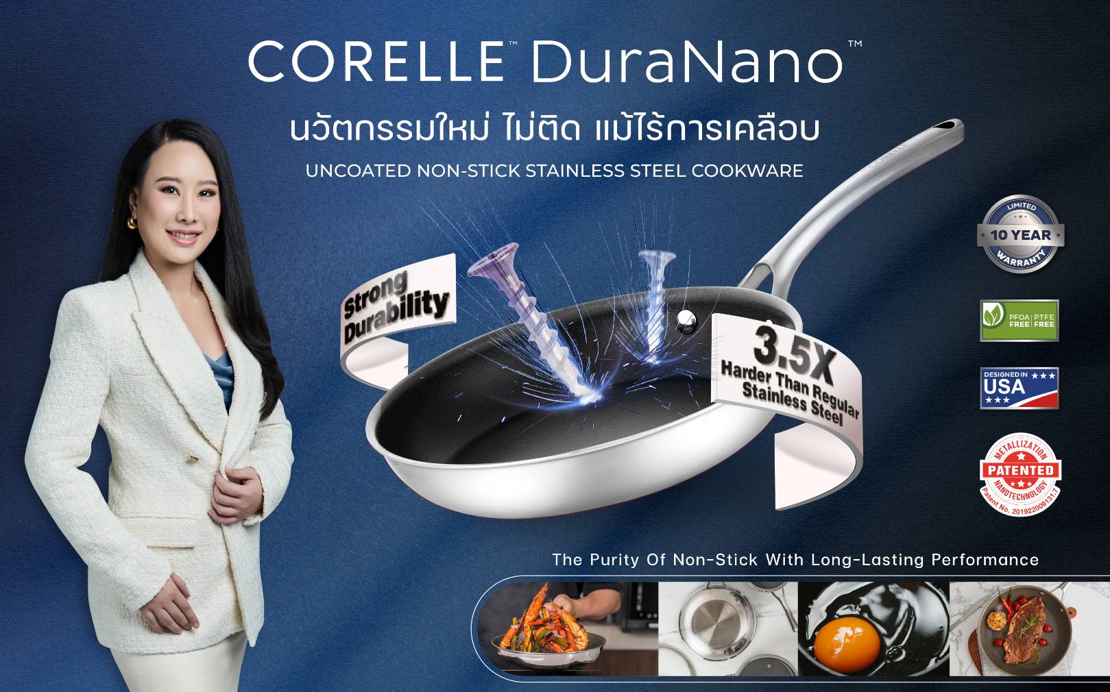 สินค้าไฮไลต์ที่เตรียมบุกตลาดไทย ได้แก่ Corelle DuraNano กระทะนวัตกรรม Uncoated Non-Stick ผลิตด้วยเทคโนโลยี Metallization Nanotechnology ช่วยให้อาหารไม่ติดกระทะโดยปราศจากการเคลือบใด ๆ จึงไม่มีสาร PFOA และ PTFE อีกทั้งยังมีความทนทานสูง ไม่ต้องกังวลเรื่องการหลุดลอก ซึ่ง เซ็นทรัล ฮอสพิแทลลิที ได้รับสิทธิเป็น ตัวแทนนำเข้าและจัดจำหน่ายแต่เพียงผู้เดียวในประเทศไทย