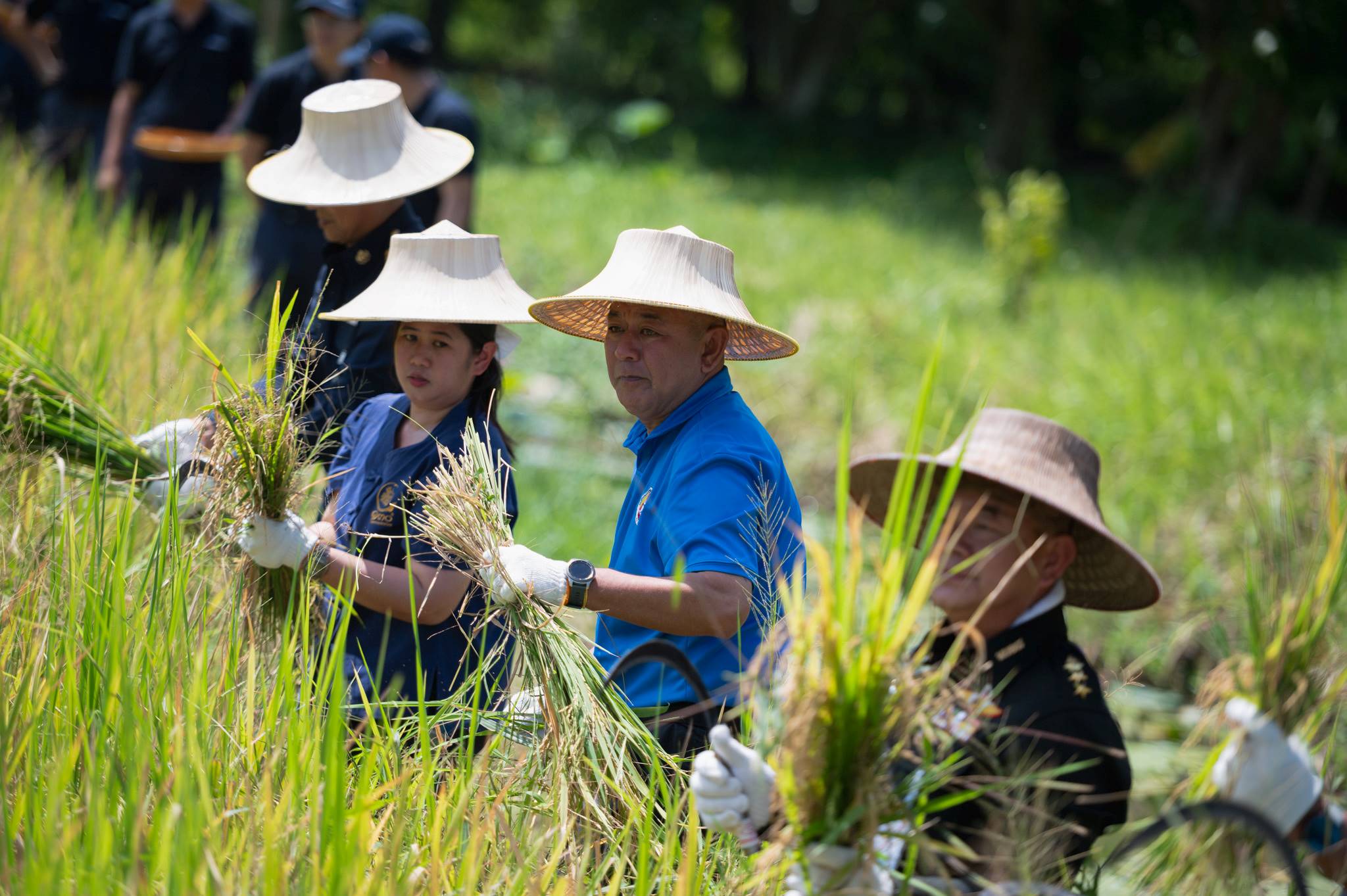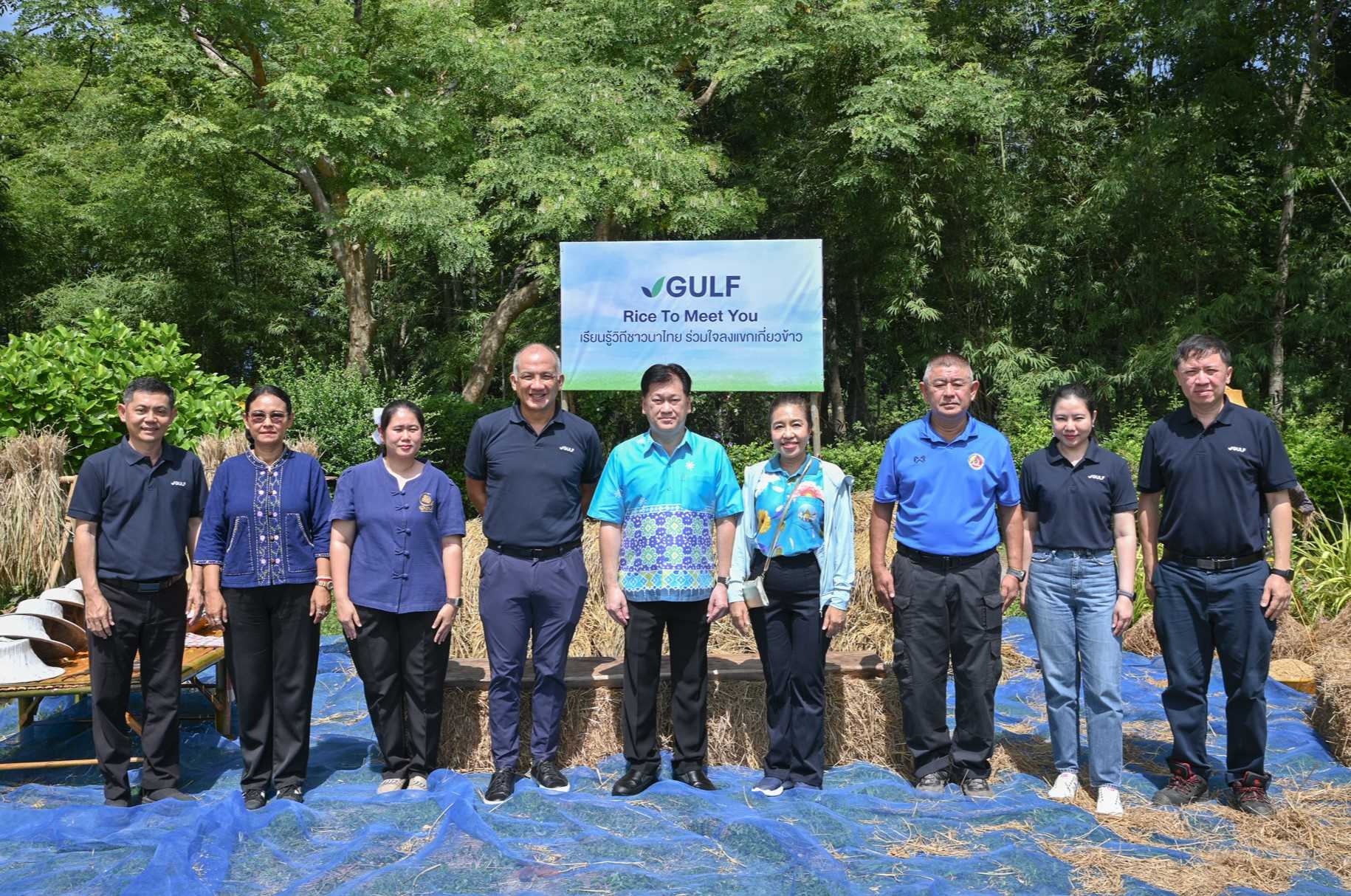 สำหรับปีนี้ซึ่งครบรอบ 10 ปีของการดำเนินงานศูนย์การเรียนรู้ฯ GULF จึงได้จัดกิจกรรม “Rice To Meet You เรียนรู้วิถีชาวนาไทย ร่วมใจลงแขกเกี่ยวข้าว” เพื่อส่งเสริมการเรียนรู้วิถีชีวิตชาวนาไทยและอนุรักษ์ประเพณีอันดีงาม โดยเปิดโอกาสให้เยาวชน หน่วยงานภาครัฐ – เอกชน และประชาชนทั่วไป ได้มีส่วนร่วมในประเพณี “การลงแขกเกี่ยวข้าว – ทำขวัญข้าว” ไม่เพียงเป็นการสืบสานวัฒนธรรม แต่ยังเป็นการสร้างพื้นที่ทางสังคมเพื่อการแลกเปลี่ยนเรียนรู้ และถ่ายทอดองค์ความรู้ระหว่างเกษตรกรผู้มีประสบการณ์และคนรุ่นใหม่ ขณะเดียวกันยังเป็นการเผยแพร่นวัตกรรมการทำเกษตรอินทรีย์แบบครบวงจรของศูนย์การเรียนรู้ฯ ไม่ว่าจะเป็น การทำนาตอที่สอง ช่วยลดการปล่อยก๊าซเรือนกระจก การใช้จุลินทรีย์ย่อยสลายตอซังเป็นปุ๋ยอินทรีย์ โมเดลการเลี้ยงหนอนแมลงทหารดำ เพื่อจัดการเศษวัสดุเหลือใช้ทางการเกษตรและสร้างแหล่งโปรตีนสำหรับการเลี้ยงไก่ไข่อีกด้วย