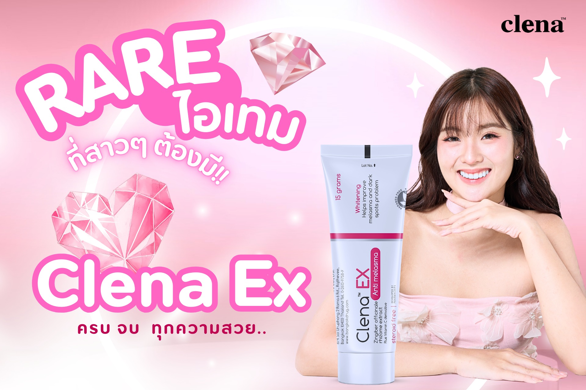 สำหรับ Clena EX โดดเด่นด้วยนวัตกรรมการสกัดสารสกัดขิงเข้มข้น ผ่านเทคโนโลยี Supercritical Fluid Extraction ที่ให้สารสกัดบริสุทธิ์ เข้มข้น ทำให้ได้ “Ginmela” สารสกัดขิงสิทธิบัตรเฉพาะของ Clena EX มีคุณสมบัติ ช่วยลดเลือนจุดด่างดำ ช่วยให้ผิวแลดูกระจ่างใส และดูเรียบเนียน เป็นเครื่องสำอางที่มีสารสกัดจากธรรมชาติที่อ่อนโยน ไม่มีสเตียรอยด์ ใช้ได้เป็นประจำทุกวัน และใช้ร่วมกับสกินแคร์อื่น ๆ ได้เป็นอย่างดี อาทิ วิตามินซี เรตินอล