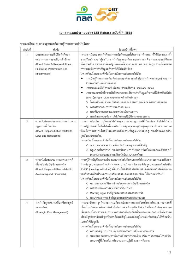 HoonSmart.com>> “ก.ล.ต.-ตลาดหลักทรัพย์ฯ” ร่วมจัดทำ 6 มาตรฐานองค์ความรู้กรรมการไทย เพื่อส่งเสริมให้กรรมการบริษัทจดทะเบียนมีความรู้ เข้าใจบทบาทหน้าที่และความรับผิดชอบ พัฒนาตนเองอย่างสม่ำเสมอ เพื่อสร้างความเชื่อมั่นให้กับผู้ถือหุ้นและผู้ลงทุน พร้อมส่งเสริมให้องค์กรที่ทำหน้าที่จัดหลักสูตรฝึกอบรมกรรมการ ได้พัฒนาหลักสูตรเพื่อเป็นทางเลือกมากขึ้น