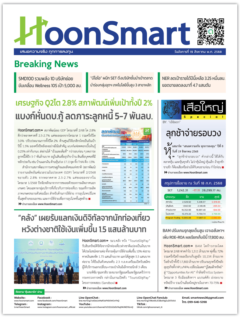 หนังสือพิมพ์ HoonSmart ปีที่ 8 ฉบับวันที่ 19 ส.ค. 2568 18/08/2025 19:40Ple HoonsmartBreaking NewsExclusive News Facebook iconFacebookTwitter iconTwitterLINE iconLine