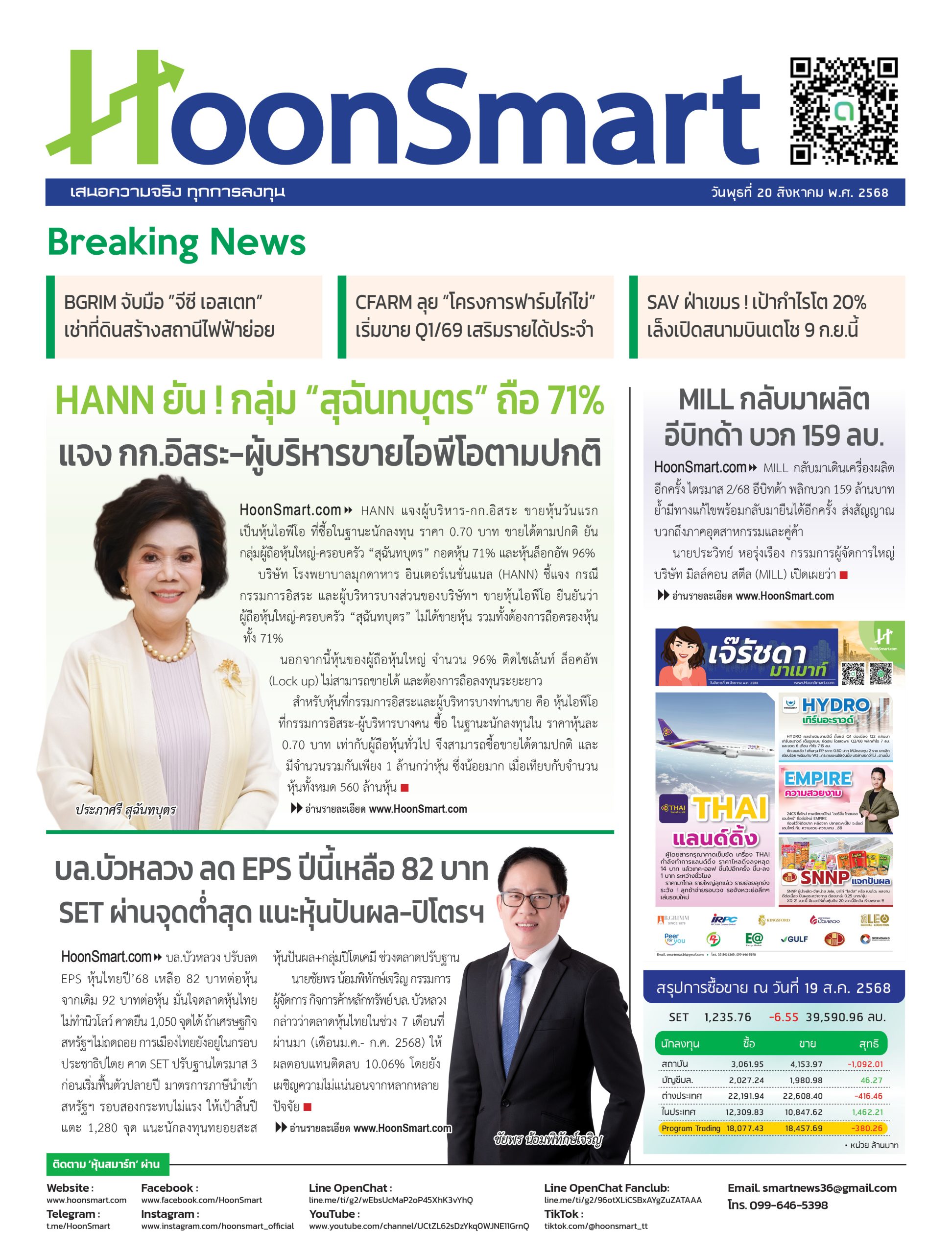หนังสือพิมพ์ HoonSmart ปีที่ 8 ฉบับวันที่ 20 ส.ค. 2568 19/08/2025 19:52Ple HoonsmartBreaking NewsExclusive News Facebook iconFacebookTwitter iconTwitterLINE iconLine