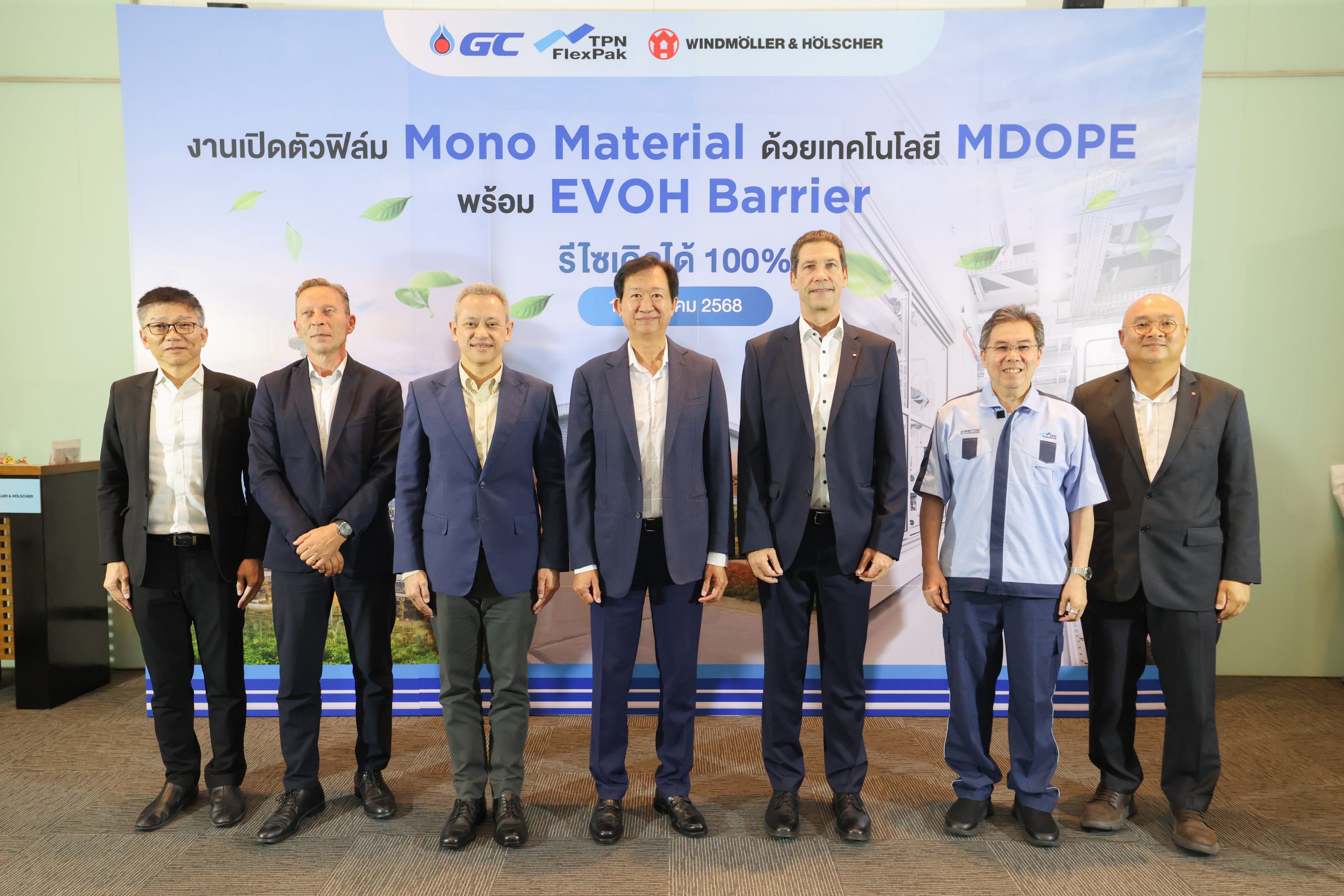 HoonSmart.com>> บริษัท พีทีที โกลบอล เคมิคอล จำกัด (มหาชน) (GC) ผู้นำธุรกิจเคมีภัณฑ์ระดับสากลเพื่อสร้างสรรค์คุณภาพชีวิต ประกาศความสำเร็จร่วมกับพันธมิตรทางธุรกิจ บริษัท ทีพีเอ็น เฟล็กซ์แพค จำกัด ( TPN FlexPak) ผู้นำด้านการผลิตบนพื้นฐานแนวคิดที่ยึดหลักการความยั่งยืนในการผลิตบรรจุภัณฑ์เพื่อรักษาสิ่งแวดล้อมให้เกิดความยั่งยืนสูงสุด และ Windmoeller & Hoelscher หรือ W&H ผู้ให้บริการและจัดหาชั้นนำด้านเครื่องจักรและระบบสำหรับการผลิตบรรจุภัณฑ์แบบอ่อน ผนึกกำลังพัฒนาโซลูชันบรรจุภัณฑ์แบบอ่อน ด้วยนวัตกรรมฟิล์ม Mono Material MDOPE (Machine Direction Orientation Polyethylene Film) โครงสร้างฟิล์ม 7 ชั้น ที่มีส่วนผสมของ EVOH (Ethylene Vinyl Alcohol) จึงมีคุณสมบัติในการป้องกันออกซิเจน (Oxygen barrier) ได้อย่างดีเยี่ยม และสามารถนำไปแปรรูปเป็นบรรจุภัณฑ์แบบ Mono Material ที่รีไซเคิลได้ 100% นับเป็นก้าวสำคัญในการยกระดับอุตสาหกรรมบรรจุภัณฑ์ไทย สู่การเป็นผู้นำด้าน Circular Packaging