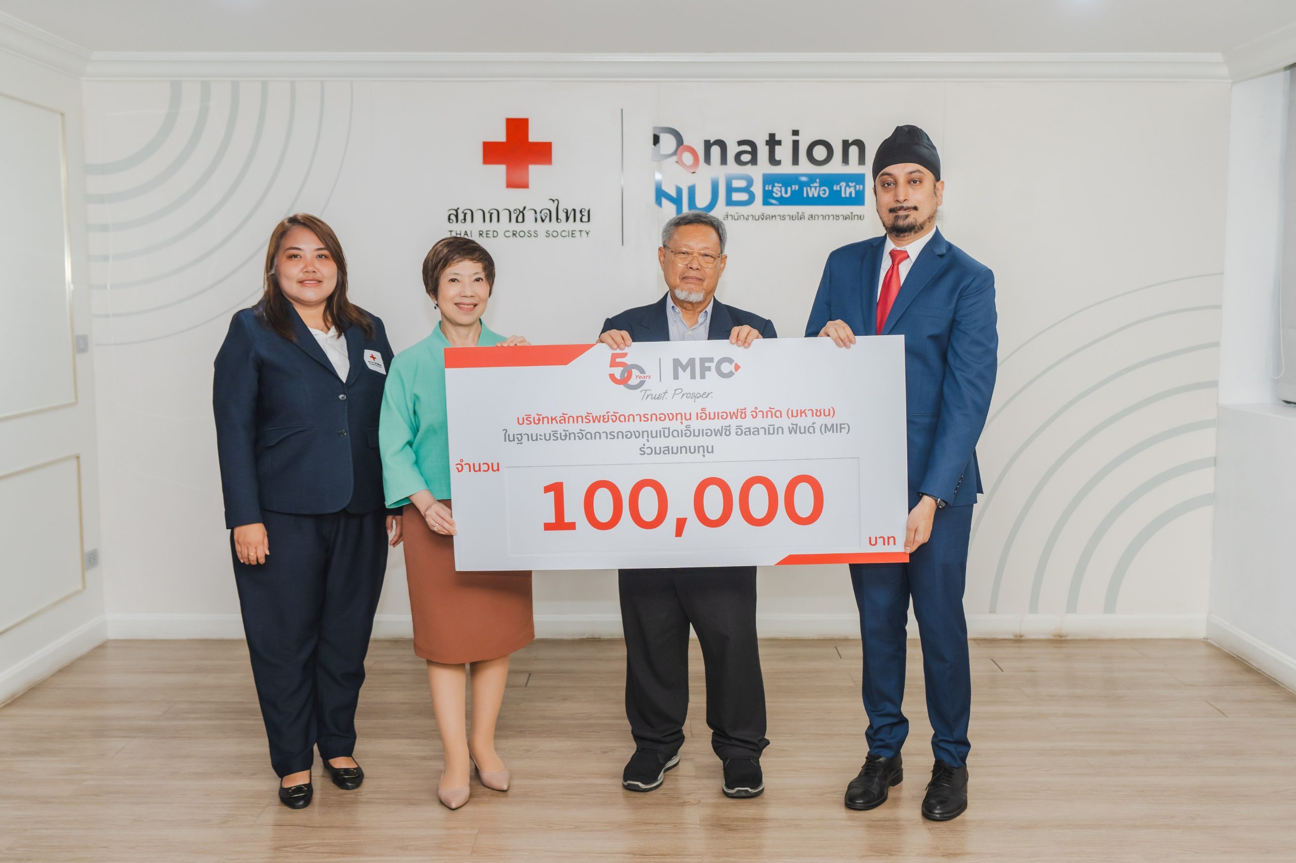 บริษัทหลักทรัพย์จัดการกองทุน เอ็มเอฟซี จำกัด (มหาชน) ในฐานะผู้จัดการกองทุนเปิดเอ็มเอฟซี อิสลามิก ฟันด์ (MIF) โดย นายธนโชติ รุ่งสิทธิวัฒน์ กรรมการผู้จัดการ บลจ.เอ็มเอฟซี และนายนภดล เต๊ะหมาน ที่ปรึกษากองทุน ได้ร่วมบริจาคเงินส่วนหนึ่งของค่าธรรมเนียมการจัดการ ให้กับสภากาชาดไทย จำนวน 100,000 บาท เพื่อร่วมช่วยเหลือผู้ประสบภัยที่ได้รับผลกระทบจากสถานการณ์ชายแดน โดยมี นางจันทร์ประภา วิชิตชลชัย รองผู้อำนวยการสำนักงานจัดหารายได้ สภากาชาดไทย เป็นผู้รับมอบ