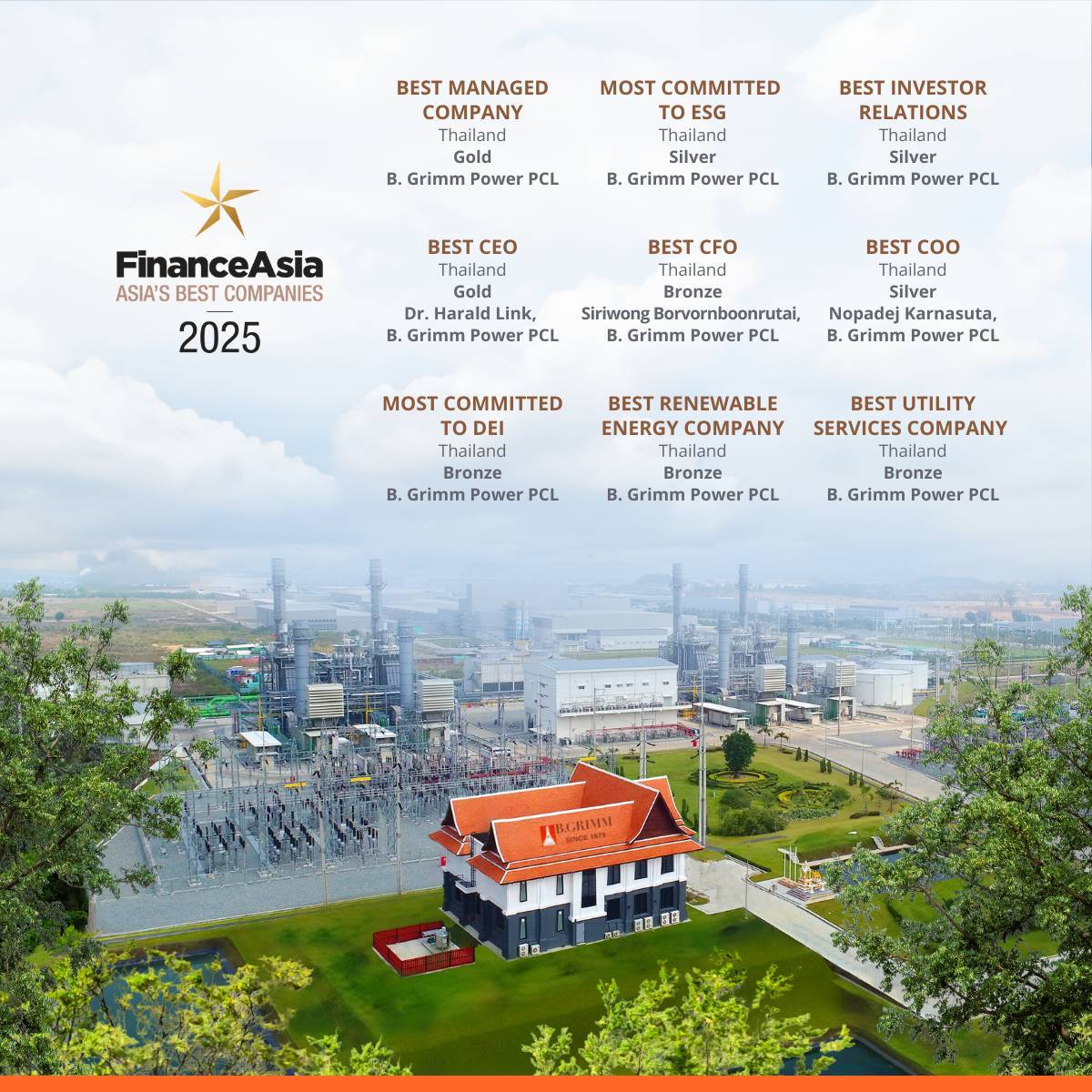HoonSmart.com>> บี.กริม เพาเวอร์ ตอกย้ำศักยภาพการดำเนินธุรกิจ ได้รับ 9 รางวัล จากการประกาศรายชื่อสุดยอดบริษัทแห่งเอเชีย ประจำปี 2568 (Finance Asia Asia’s Best Companies 2025) จัดโดยนิตยสารไฟแนนซ์เอเชีย (FinanceAsia) นิตยสารการเงินการลงทุนชั้นนำของภูมิภาคเอเชีย ซึ่งได้มอบรางวัลในหมวดต่างๆ แก่องค์กรชั้นนำของเอเชีย โดยการสำรวจความคิดเห็นของผู้จัดการกองทุน นักวิเคราะห์ และนักการเงินในภูมิภาค