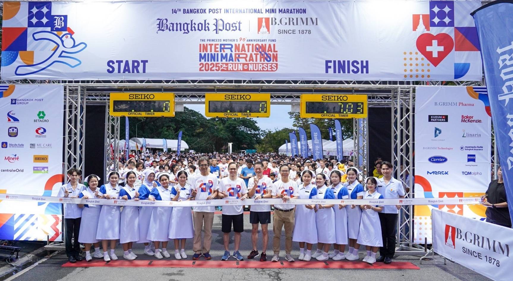 นายแพทย์ สุวัช เซียสิริวัฒนา รองประธานมูลนิธิกองทุนการกุศลสมเด็จพระศรีนครินทราบรมราชชนนี คุณนพเดช กรรณสูต ประธานเจ้าหน้าที่บริหารธุรกิจในประเทศไทยและโซลูชั่นธุรกิจอุตสาหกรรม บริษัท บี.กริม เพาเวอร์ จำกัด (มหาชน) คุณปัญญา กิจเจริญการกุล รองกรรมการผู้จัดการใหญ่ บริษัท บี.กริม ฟาร์มา และ คุณศูนย์รัฐ บุณยมณี บรรณาธิการ หนังสือพิมพ์บางกอกโพสต์ ร่วมเป็นประธานเปิดงานการจัดงานแข่งขัน เดิน-วิ่งเพื่อสุขภาพการกุศลฯ ในครั้งนี้ ยังมุ่งรณรงค์ให้ประชาชนคนไทยออกกำลังกายเพื่อสุขภาพ โดยแบ่งการแข่งขันออกเป็น 3 ประเภท ได้แก่ มินิ มาราธอน (Mini Marathon) ระยะทาง 10 กิโลเมตรไมโคร มาราธอน (Micro Marathon) ระยะทาง 5 กิโลเมตร และฟันรัน (Fun Run) ระยะทาง 3 กิโลเมตร โดยในปีนี้มีนักวิ่งเข้าร่วมโครงการมากากว่า 2,000 คน