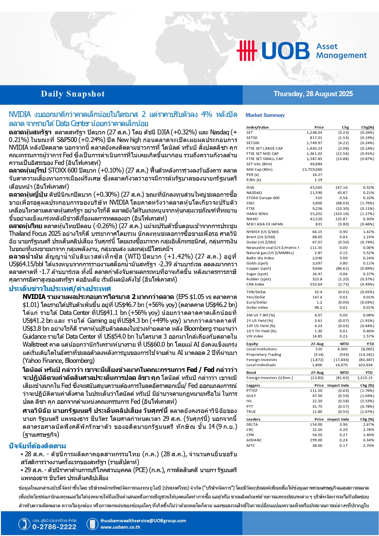 NVIDIA งบออกมาดีกว่าคาดเล็กน้อย Q2 แต่ราคาปรับตัวลง 4% หลังปิดตลาด 28/08/2025 09:2928/08/2025 09:52009Breaking News, Fund Manager HoonSmart.com>>NVIDIA งบออกมาดีกว่าคาดเล็กน้อย Q2 แต่ราคาปรับตัวลง 4% หลังปิดตลาด จากรายได้ Data Center น้อยกว่าคาดเล็กน้อย ———————————————————————————————————————————————————– Facebook iconFacebookTwitter iconTwitterLINE iconLine