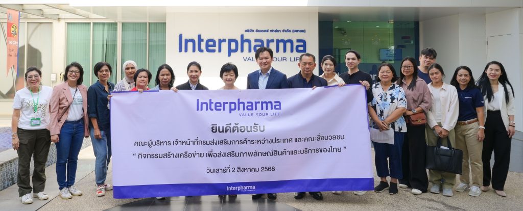 ดร.ตฤณวรรธน์ ธนิตนิธิพันธ์ ประธานเจ้าหน้าที่บริหาร บริษัท อินเตอร์ ฟาร์มา จำกัด (มหาชน) หรือ IP (คนที่ 9 จากซ้าย) ให้การต้อนรับ นางสาวสุนันทา กังวาลกุลกิจ อธิบดีกรมส่งเสริมการค้าระหว่างประเทศ (DITP) (คนที่ 8 จากซ้าย), นางสุภาพร สุขมาก รองอธิบดีฯ (คนที่ 7 จากซ้าย) พร้อมทีมผู้บริหาร และคณะสื่อมวลชน เยี่ยมชมกระบวนการผลิตเวชภัณฑ์มาตรฐานระดับโลก และรับฟังทิศทางการดำเนินธุรกิจของบริษัทฯที่มุ่งสู่ความเป็นผู้นำด้านการคิดค้น และนำเสนอผลิตภัณฑ์สุขภาพที่แตกต่าง มีประสิทธิภาพและความปลอดภัย เพื่อป้องกันและรักษาโรค อันจะนำไปสู่การช่วยชะลอวัย และมีชีวิตที่ยืนยาวมากขึ้น ด้วยเทคโนโลยีที่ทันสมัย พร้อมได้มีการหารือแนวทางยกระดับอุตสาหกรรมสุขภาพไทยสู่ระดับโลก ณ โรงงานอินเตอร์ ฟาร์มา ซึ่งตั้งอยู่ภายในนิคมอุตสาหกรรมโรจนะ เฟส 2 จังหวัดพระนครศรีอยุธยา พื้นที่รวมกว่า 20 ไร่ เมื่อเร็วๆนี้