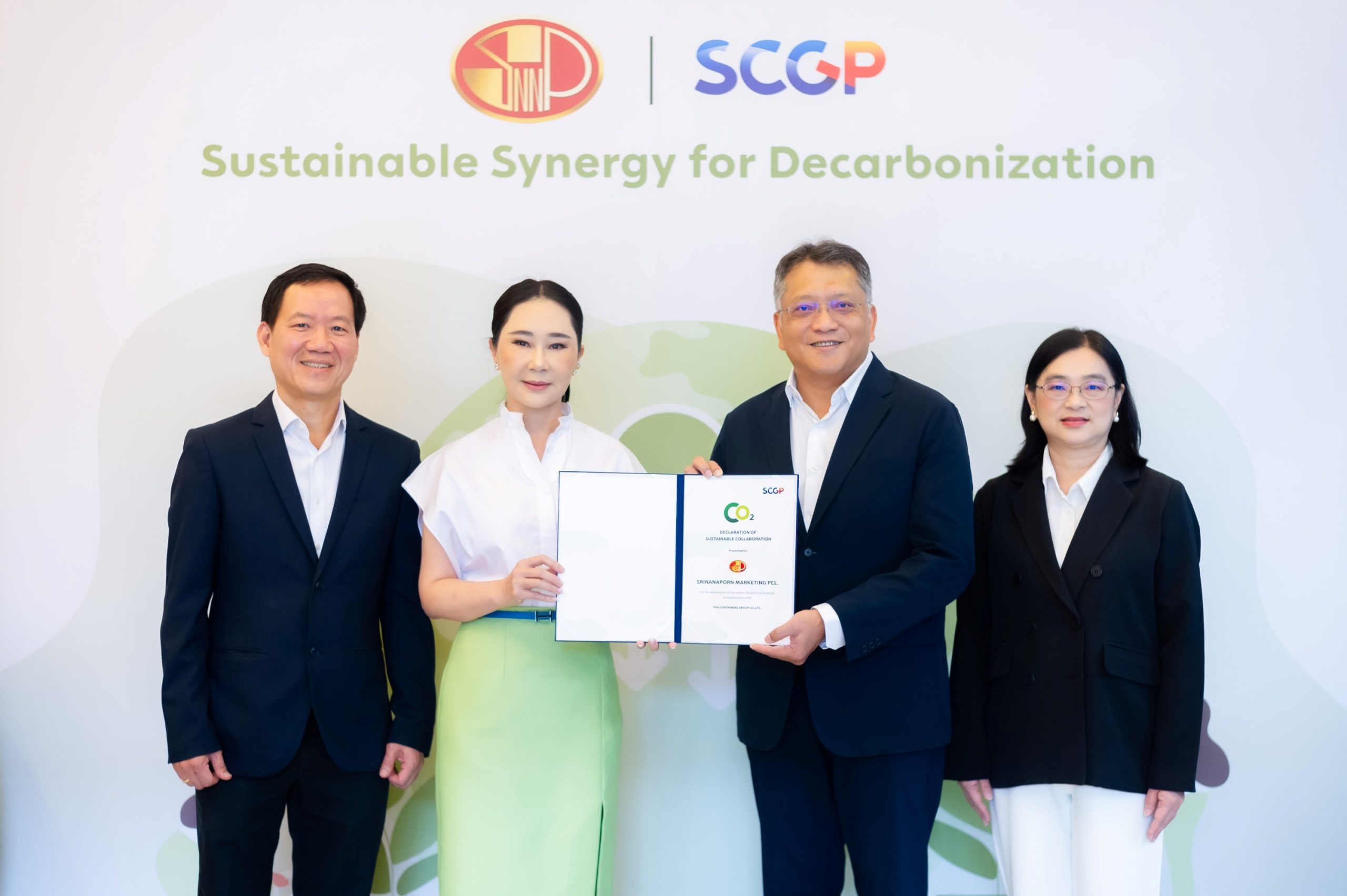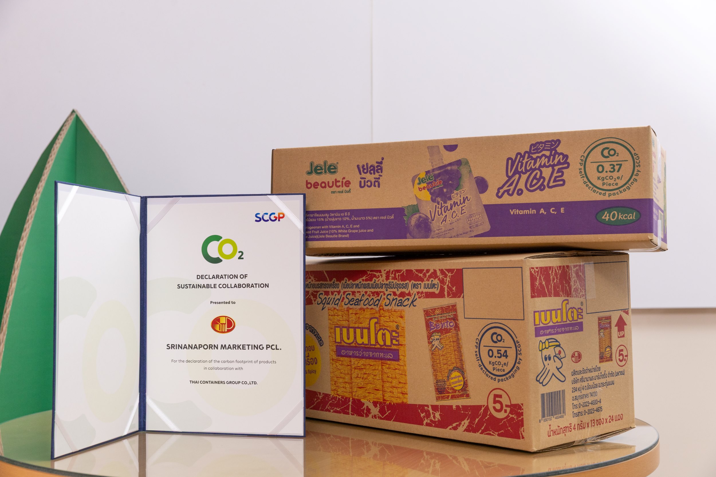 นางกิตติยา ชัยสถาพร กรรมการบริษัท และรองกรรมการผู้จัดการฝ่ายจัดซื้อ และซัพพลายเชน บริษัท ศรีนานาพร มาร์เก็ตติ้ง (SNNP) ร่วมกับ นายเอกราช นิโรจน์ ประธานเจ้าหน้าที่บริหารสายการตลาด บริษัทเอสซีจี แพคเกจจิ้ง (SCGP) ส่งต่อบรรจุภัณฑ์ที่ติดฉลากคาร์บอนฟุตพริ้นท์ของผลิตภัณฑ์ (CFP) ที่ออกโดย SCGP เพื่อแสดงปริมาณการปล่อยก๊าซเรือนกระจก สร้างความโปร่งใส และความรับผิดชอบต่อสังคม