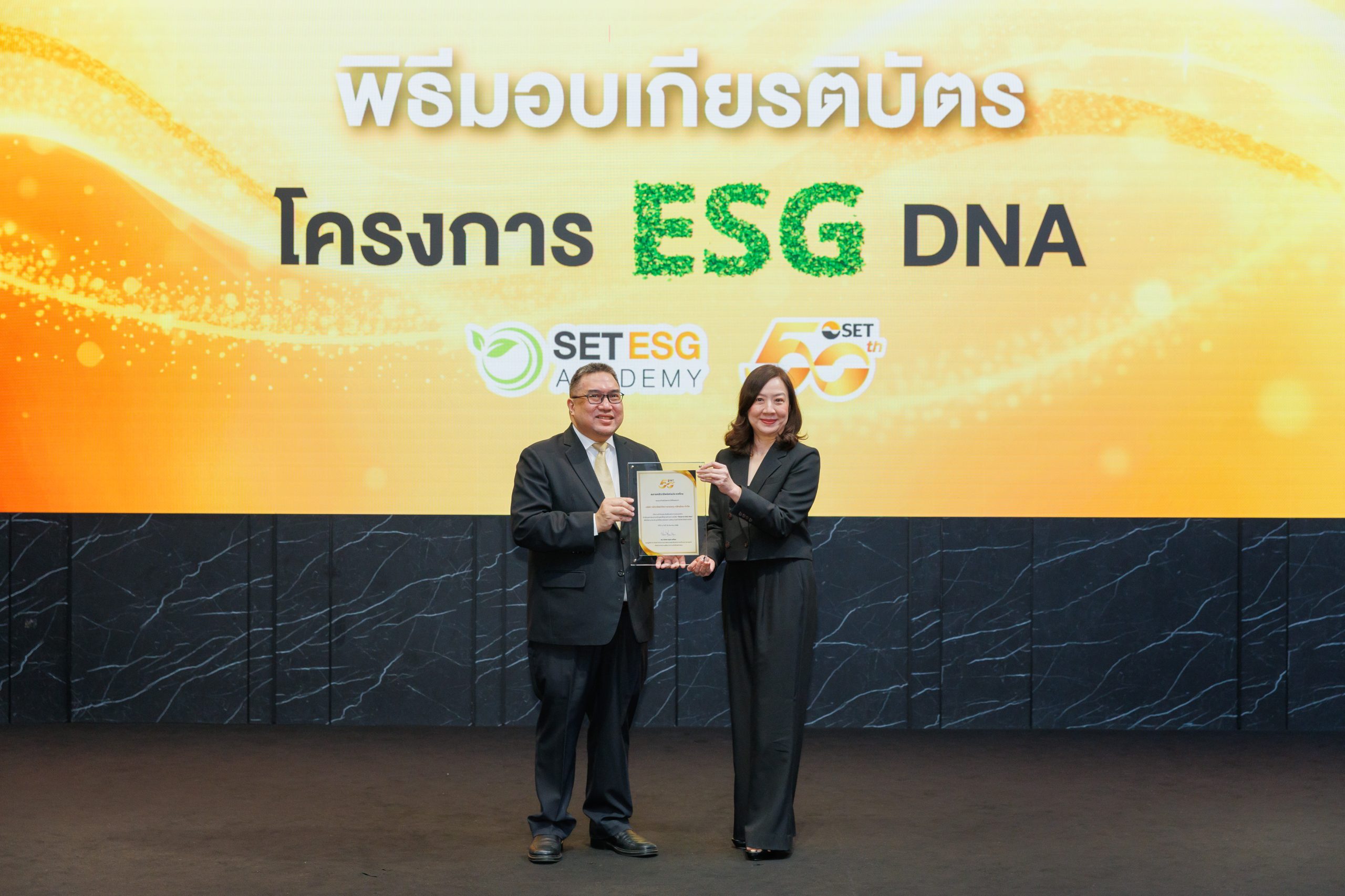 ทั้งนี้ บลจ.กสิกรไทย ได้เข้าร่วมโครงการดังกล่าวอย่างต่อเนื่องตั้งแต่ปีแรกที่จัดขึ้นในปี 2566 และนำมาปรับให้สอดคล้องกับแนวคิด “Insight to Impact” ที่มุ่งเน้นการสร้างผลกระทบเชิงบวกทั้งต่อเศรษฐกิจ สังคม และสิ่งแวดล้อม เพื่อสร้างความเชื่อมั่นให้กับผู้ลงทุน พันธมิตรทางธุรกิจ และผู้มีส่วนได้ส่วนเสียทุกฝ่าย โดยมีนางสาวธิดาศิริ ศรีสมิต, CFA (ขวา) Chief Investment Officer (รองกรรมการผู้จัดการ สายงานจัดการลงทุน) บลจ.กสิกรไทย เป็นตัวแทนเข้ารับมอบเกียรติบัตรจาก ดร.ศรพล ตุลยะเสถียร (ซ้าย) รองผู้จัดการตลาดหลักทรัพย์แห่งประเทศไทย ณ อาคารตลาดหลักทรัพย์แห่งประเทศไทย เมื่อเร็วๆ นี้