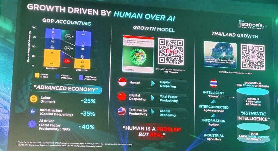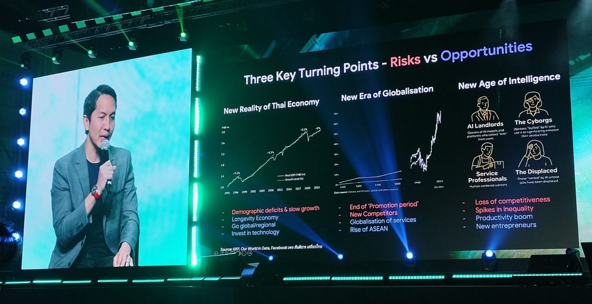 จากงาน KBTG Techtopia ปี 3 บนเวทีเสวนาภายใต้หัวข้อ “Shifting the Global Megatrends” หรือ การเปลี่ยนทิศเมกะเทรนด์โลก ไทยต้องปรับตัว โดยมี ดร. สันติธาร เสถียรไทย กรรมการผู้ทรงคุณวุฒิ คณะกรรมการนโยบายการเงิน ธนาคารแห่งประเทศไทย,นายปิยะชาติ อิศรภักดี ประธานเจ้าหน้าที่บริหาร บริษัท แบรนดิ แอนด์ คอมพานีส์ (BRANDi) ร่วมเสวนา ดำเนินรายการ โดย นายเรืองโรจน์ พูนผล ประธานกลุ่มบริษัท กสิกร บิซิเนส-เทคโนโลยี กรุ๊ป (KBTG)