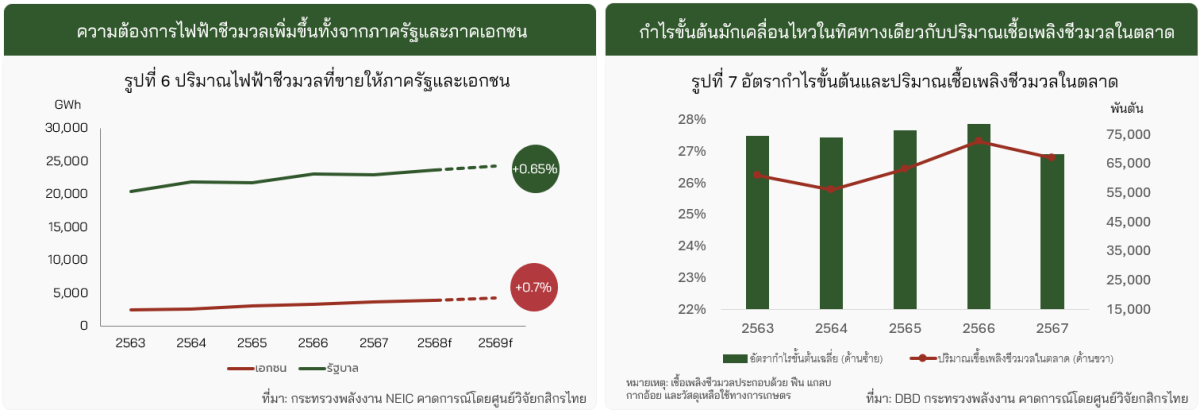 ภาพรวมรายได้ธุรกิจไฟฟ้าหมุนเวียนปี 2569 ยังเติบโต โดยเฉพาะในกลุ่มโรงไฟฟ้าชีวมวลที่ได้แรงหนุนจากดีมานด์ทั้งรัฐและเอกชน แต่ต้นทุนเชื้อเพลิงชีวมวลมีแนวโน้มสูงขึ้นตามการชะลอตัวของผลผลิตพืชเกษตร ส่งผลให้ อัตรากำไรขั้นต้นอาจหดตัว