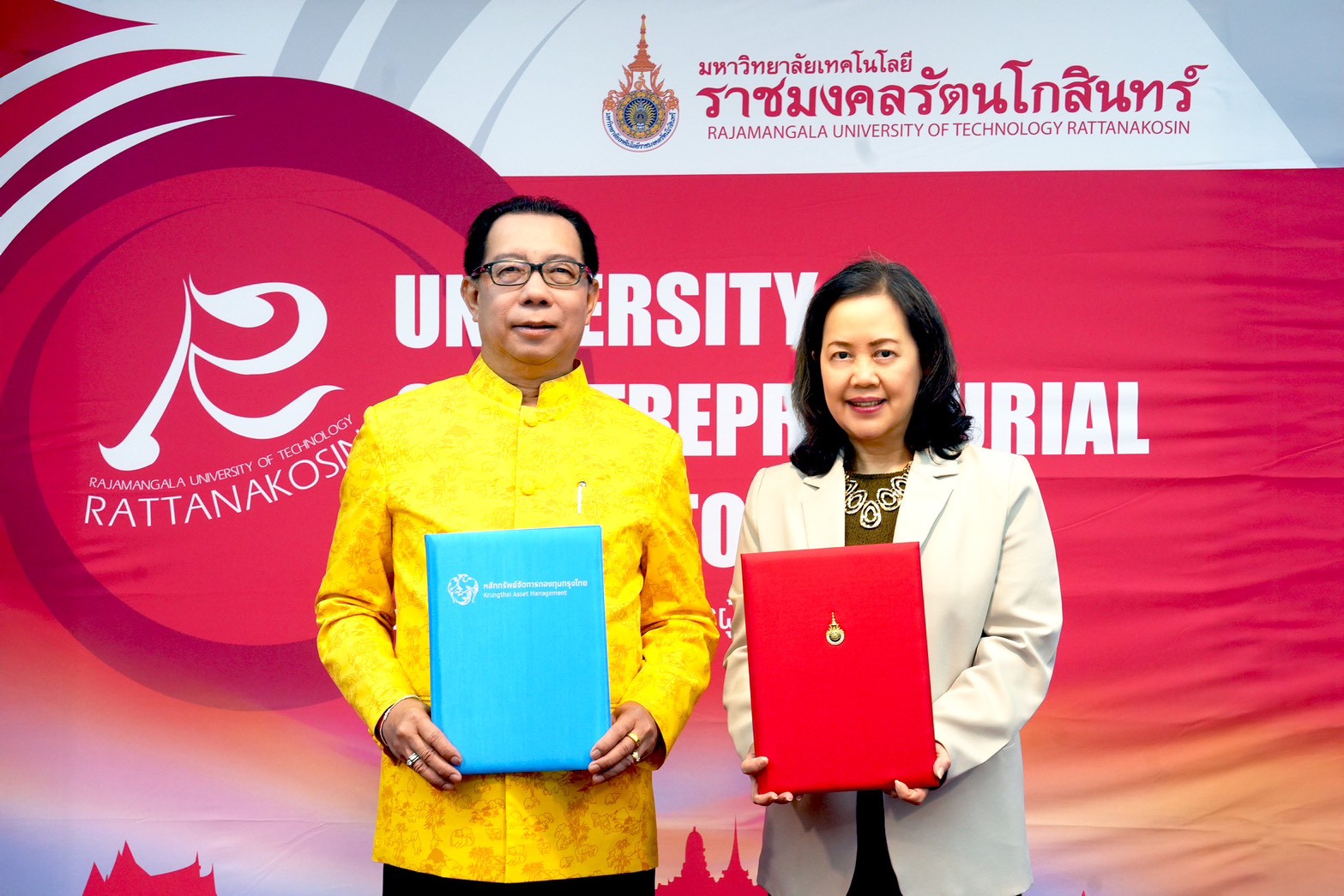 รองศาสตราจารย์ ดร.อุดมวิทย์ ไชยสกุลเกียรติ (ซ้าย) อธิการบดี มหาวิทยาลัยเทคโนโลยีราชมงคลรัตนโกสินทร์ หรือ RMUTR และนางสาวหัสวรา แสงรุจิ (ขวา) รองกรรมการผู้จัดการ ผู้บริหารสายงานกองทุนสำรองเลี้ยงชีพ บริษัทหลักทรัพย์จัดการกองทุน กรุงไทย จำกัด (มหาชน) ได้ร่วมลงนามสัญญาแต่งตั้ง บลจ.กรุงไทย ให้เป็นบริษัทจัดการกองทุนสำรองเลี้ยงชีพ ณ ห้องไอยรา อาคารสำนักงานอธิการบดี มหาวิทยาลัยเทคโนโลยีราชมงคลรัตนโกสินทร์ โดยได้รับเกียรติจากผู้บริหาร และคณะกรรมการจัดการกองทุนสำรองเลี้ยงชีพ RMUTR เข้าร่วมเป็นสักขีพยานอย่างคับคั่งเมื่อเร็วๆ นี้