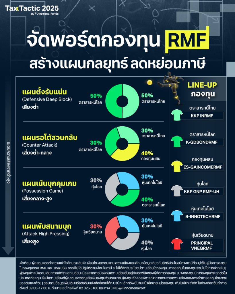 พร้อมกับแผนกลยุทธ์การลงทุนลดหย่อนแบบจัดพอร์ต ผ่านการคัดเลือก RMF ที่ตอบโจทย์แต่ละ Tactic การลงทุน ได้แก่