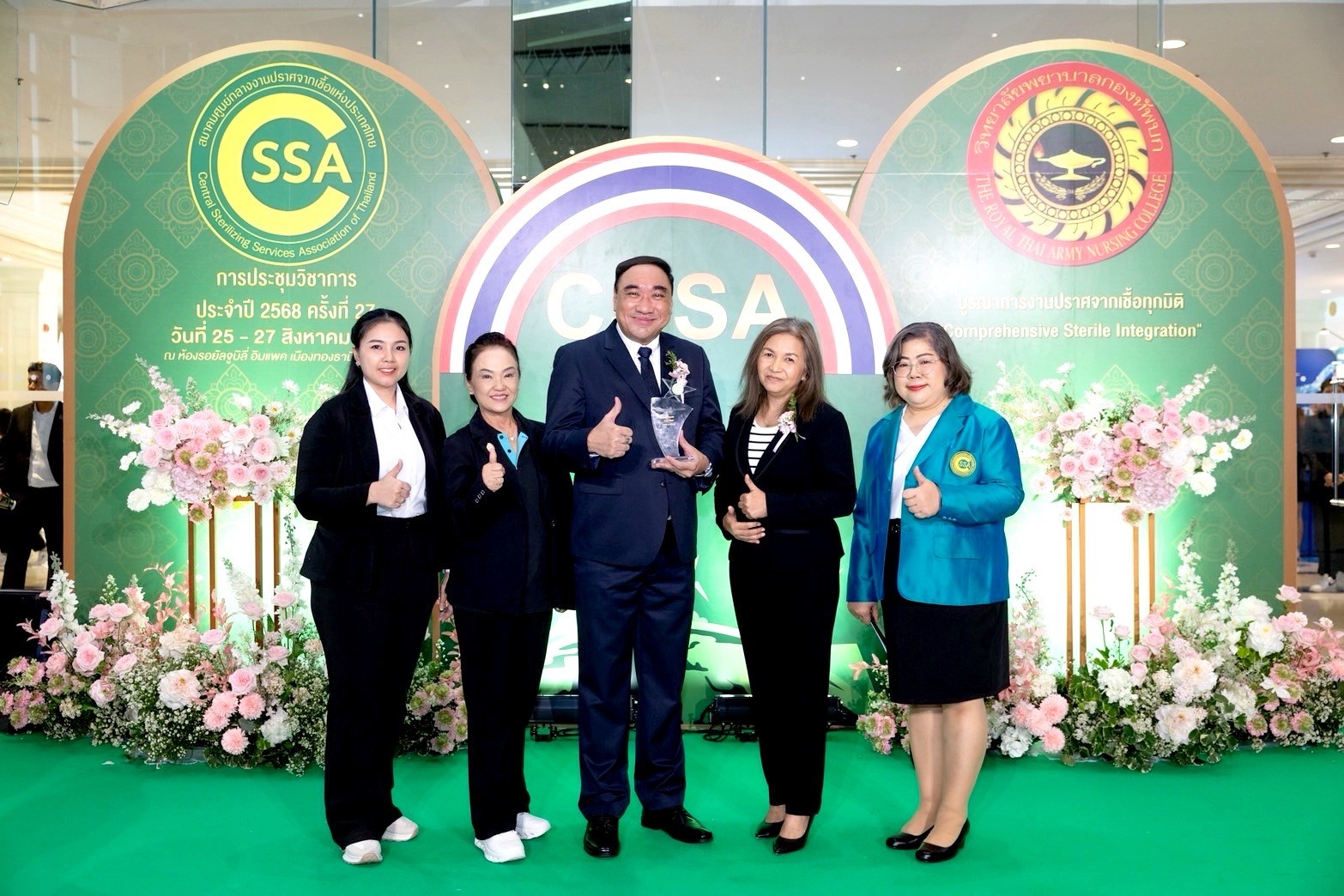 นายพงศ์เชฎฐ คงศักดิ์ (กลาง) รองประธานเจ้าหน้าที่บริหาร บริษัท นำวิวัฒน์ เมดิคอล คอร์ปอเรชั่น  (NAM)  พร้อมคณะทำงานร่วมเป็นตัวแทนบริษัทฯ เข้ารับมอบโล่และใบประกาศเกียรติคุณรางวัล CSSA AWARDS 2025 ประเภท GOLD AWARDS จากสมาคมศูนย์กลางงานปราศจากเชื้อแห่งประเทศไทย ในงานประชุมวิชาการประจำปี 2568 บูรณาการงานปราศจากเชื้อทุกมิติ “Comprehensive Sterlie Integration”