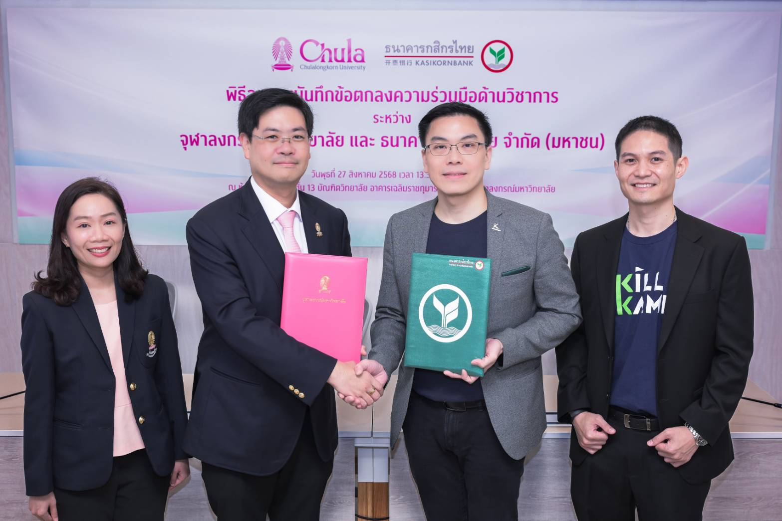HoonSmart.com>> ธนาคารกสิกรไทย และบัณฑิตวิทยาลัย จุฬาลงกรณ์มหาวิทยาลัย ลงนามบันทึกข้อตกลงความร่วมมือด้านวิชาการ (MOU) เชื่อมต่อแพลตฟอร์ม SKILLKAMP และ Chula Lifelong Learning (Chula X) เพื่อยกระดับศักยภาพการเรียนรู้และเปิดโอกาสให้ผู้เรียนสามารถเข้าถึงหลักสูตรคุณภาพที่อยู่บน 2 แพลตฟอร์ม รวมกว่า 1,000 รายวิชา ได้อย่างไร้รอยต่อ ครอบคลุมทั้งวิชาการและทักษะดิจิทัล รองรับการ Upskill–Reskill ทุกช่วงวัย โดยคาดหวังว่าความร่วมมือในครั้งนี้จะช่วยพัฒนาทักษะและสร้างบุคลากรที่มีศักยภาพเพิ่มมากขึ้น เพื่อร่วมกันขับเคลื่อนเศรษฐกิจไทยให้เติบโตไปได้อีก พร้อมเดินหน้าเปิดให้บริการเรียนรู้เต็มรูปแบบในปี 2569