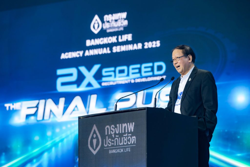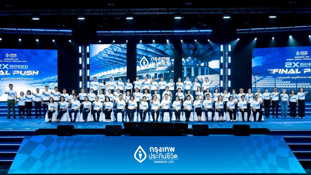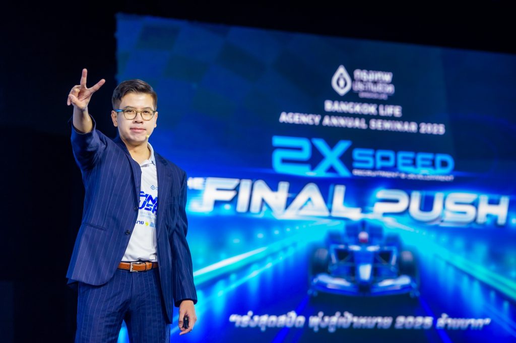 HoonSmart.com> “กรุงเทพประกันชีวิต” (BLA) จัดงานสัมมนาใหญ่ฝ่ายขายประจำปี 2568 Bangkok Life Agency Annual Seminar 2025 ภายใต้แนวคิด “2X Speed The Final Push เร่งสุดสปีด พุ่งสู่เป้าหมาย 2025” ปลุกพลังทีมนักขายร่วมขับเคลื่อนองค์กรในการเร่งสร้างและพัฒนาเพื่อเป็น “ตัวแทนของความใส่ใจ” ทั้งลูกค้าและทีมงาน ตามวิสัยทัศน์ในการก้าวสู่การเป็นบริษัทประกันชีวิตอันดับ 1 ในด้านความ “ใส่ใจ” เพื่อสร้างการเติบโตอย่างยั่งยืน มุ่งสู่เป้าหมายการเติบโต 2 เท่า ใน 5 ปี หรือภายในปี 2571 ทั้งเบี้ยประกันภัยปีแรกเติบโต 2 เท่า รายได้ฝ่ายขายเติบโต 2 เท่า ในอัตราปีละ 15% ทุกๆ ปี