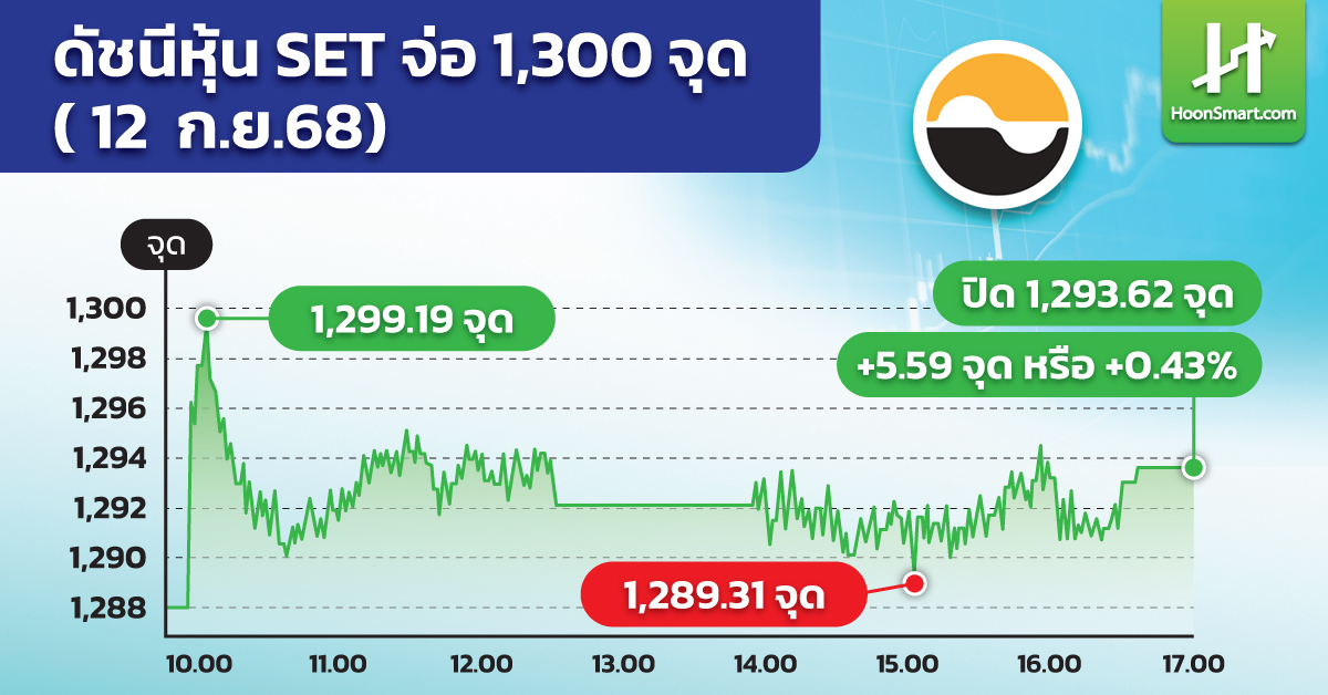 อย่างไรก็ตาม หุ้นไทยวันที่ 12 ก.ย.68 ดัชนีปิดที่ระดับ 1,293.62 จุด เพิ่มขึ้น 5.59 จุด หรือ +0.43% มูลค่าซื้อขาย 38,576.94 ล้านบาท โดยดัชนีแตะสูงสุด 1,299.19 จุด ต่ำสุด 1,289.31 จุด นักลงทุนต่างประเทศขายสุทธิ 764.44 ล้านบาท ขาย TFEX 12,213 สัญญา และบัญชีหลักทรัพย์ขายสุทธิ 191.38 บาท ส่วนสถาบันไทย 754.02 ล้านบาท นักลงทุนในประเทศซื้อสุทธิ 201.80 ล้านบาท