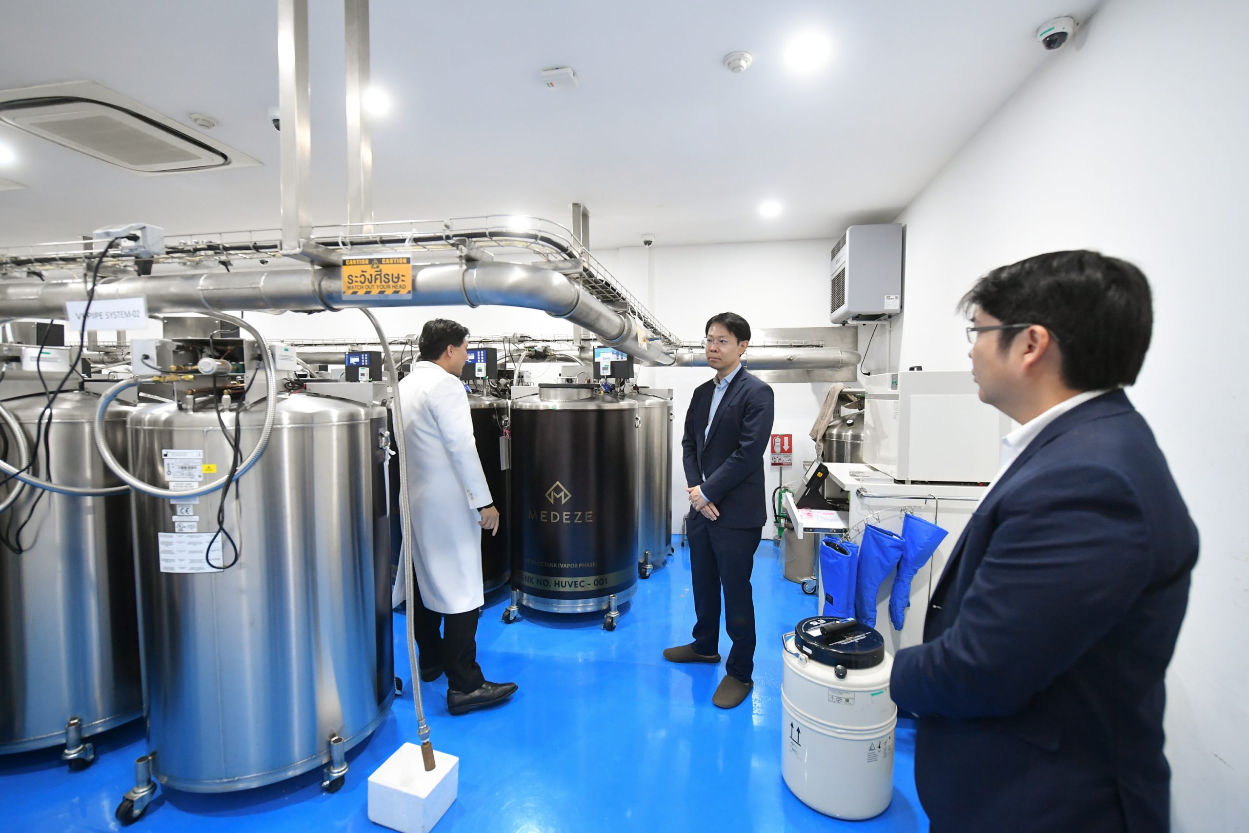 นายแพทย์วีรพล เขมะรังสรรค์ ประธานเจ้าหน้าที่บริหาร และ ดนิตา พิทักษ์เนติกุล ประธานเจ้าหน้าที่สายพัฒนาธุรกิจ บริษัท เมดีซ กรุ๊ป  (MEDEZE) ผู้นำด้านธนาคารฝากเก็บสเต็มเซลล์ , เซลล์รากผม และตรวจศักยภาพเซลล์ภูมิคุ้มกัน ในเอเชียตะวันออกเฉียงใต้  ต้อนรับ ผศ.นพ. พลกฤต ทีฆคีรีกุล ประธานเจ้าหน้าที่ฝ่ายวิทยาศาสตร์ ดร.นพ.ธนาสิทธิ์ เตชานุกูล รองหัวหน้าแผนกมะเร็งวิทยา และผู้อำนวยการโครงการพิเศษ คุณวนาลี ศักดิ์แสง ผู้จัดการพยาบาล ฝ่ายจีโนมิกส์เชิงป้องกันและการแพทย์บูรณาการ โรงพยาบาลบำรุงราษฎร์ อินเตอร์เนชั่นแนล ในโอกาสเข้าเยี่ยมชมแล็บที่ได้รับการรับรองมาตรฐาน พร้อมแลกเปลี่ยนข้อมูลเชิงวิชาการเกี่ยวกับมาตรฐานความปลอดภัย คุณภาพการเก็บรักษา และการวิจัยพัฒนา เพื่อเสริมสร้างความร่วมมือและยกระดับระบบสาธารณสุขในภูมิภาค ณ บริษัท เมดีซ กรุ๊ป  สำนักงานใหญ่ พุทธมณฑลสาย 4