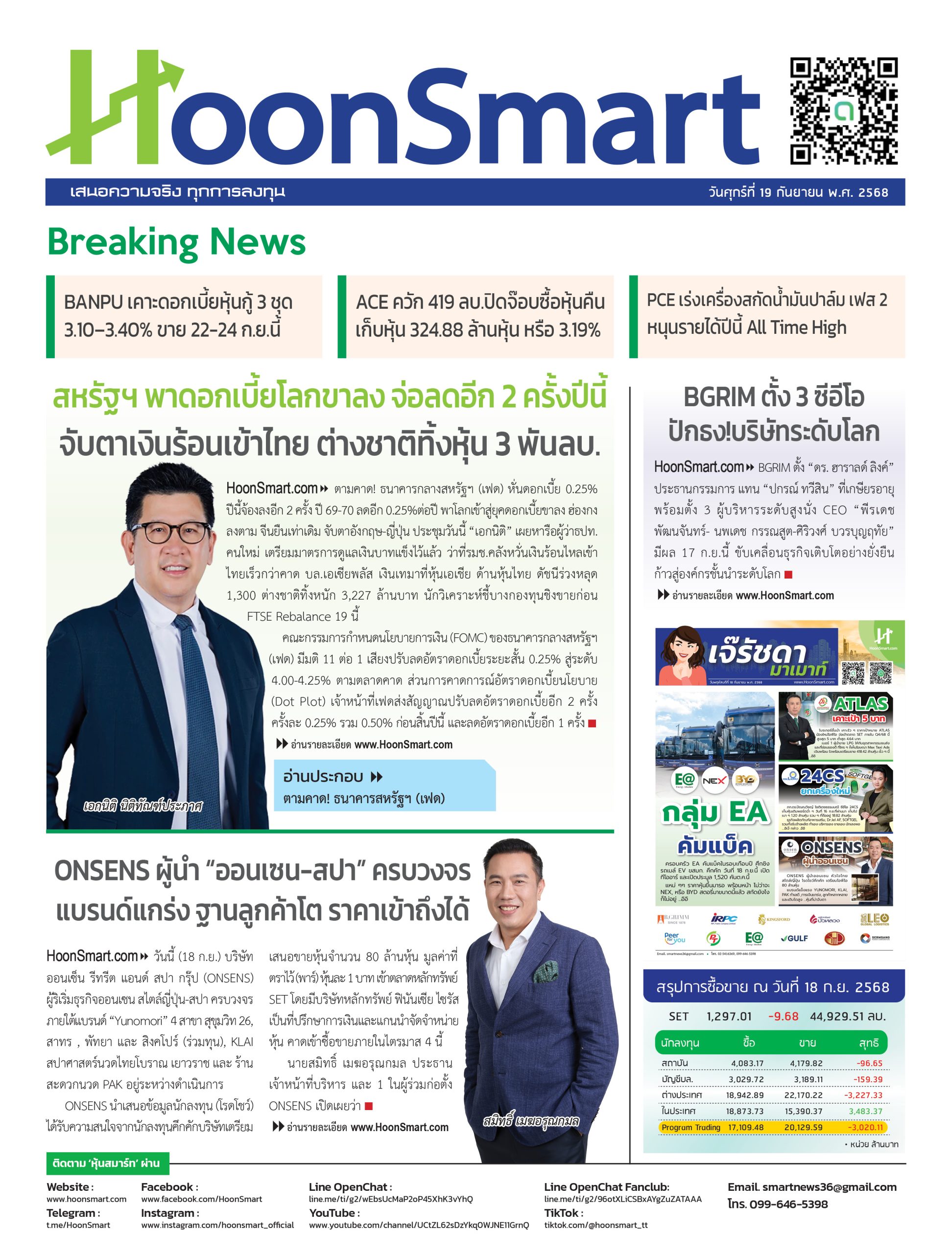 หนังสือพิมพ์ HoonSmart ปีที่ 8 ฉบับวันที่ 19 ก.ย. 2568