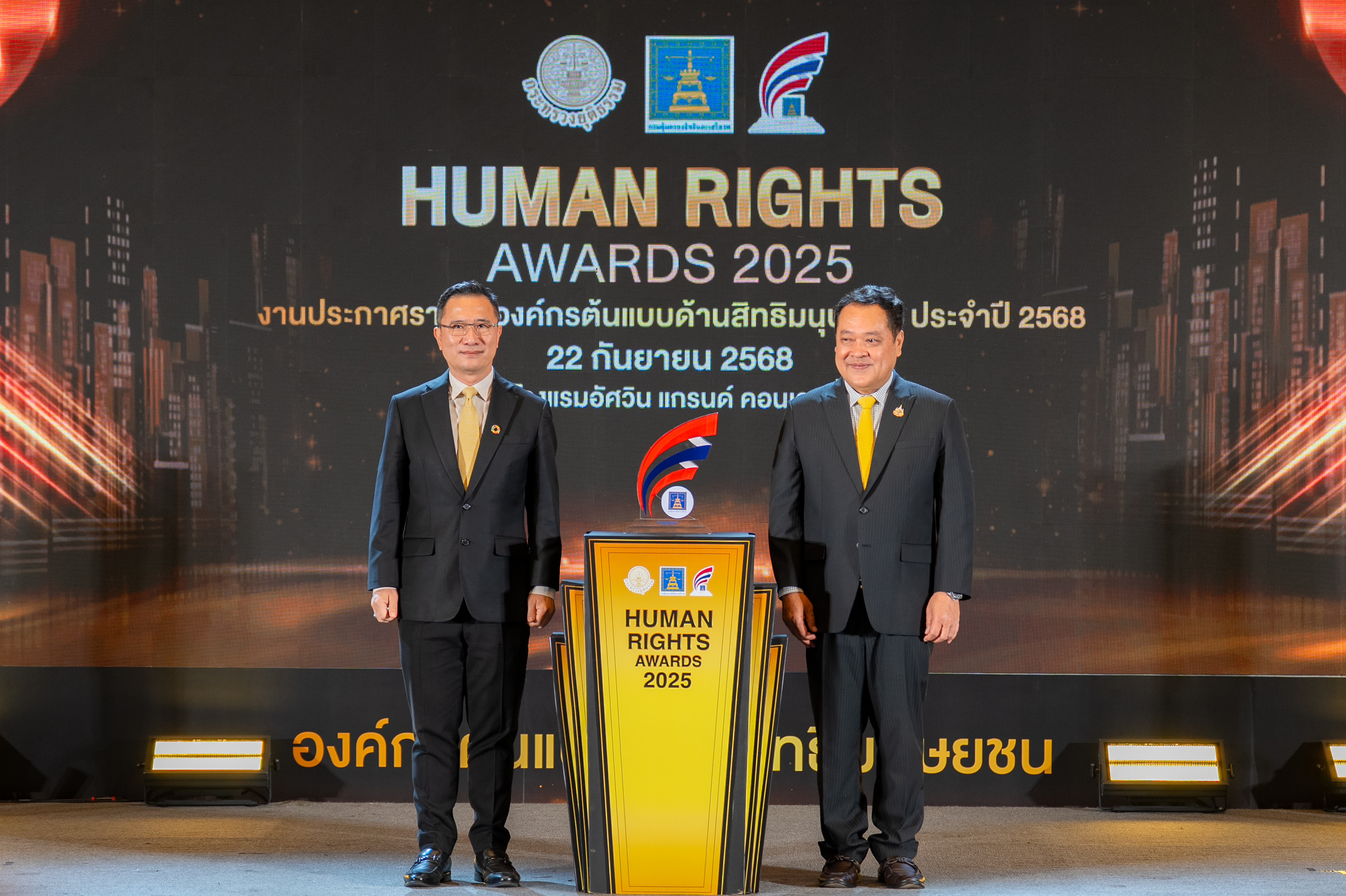 นายชลัช รัตนบุญนิธิ ผู้ช่วยกรรมการผู้จัดการ ธนาคารเพื่อการส่งออกและนำเข้าแห่งประเทศไทย (EXIM BANK) รับรางวัล “องค์กรต้นแบบด้านสิทธิมนุษยชน ระดับดีเด่น ประจำปี 2568” ประเภทองค์กรรัฐวิสาหกิจ จากพันตำรวจเอกทวี สอดส่อง รัฐมนตรีว่าการกระทรวงยุติธรรม ในงานประกาศรางวัลองค์กรต้นแบบด้านสิทธิมนุษยชน ประจำปี 2568 จัดโดยกรมคุ้มครองสิทธิและเสรีภาพ กระทรวงยุติธรรม เน้นย้ำการดำเนินธุรกิจอย่างเคารพสิทธิมนุษยชนของ EXIM BANK อย่างต่อเนื่อง 3 ปีซ้อน ณ โรงแรมอัศวิน แกรนด์ คอนเวนชั่น กรุงเทพฯ เมื่อวันที่ 22 กันยายน 2568