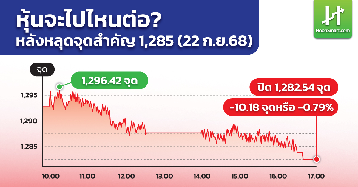 วันที่ 22 ก.ย.2568 ตลาดหุ้นเอเชียมีทั้งบวกและติดลบ ส่วนตลาดหุ้นไทยดัชนีปิดที่จุดต่ำสุด 1,282.54 จุด ลดลง 10.18 จุด หรือ -0.79% มูลค่าซื้อขายเพียง 31,595.35 ล้านบาท โดยนักลงทุนต่างชาติขายต่อ 1,671.74 ล้านบาท สถาบันไทยร่วมด้วย 1,554.85 ล้านบาท
