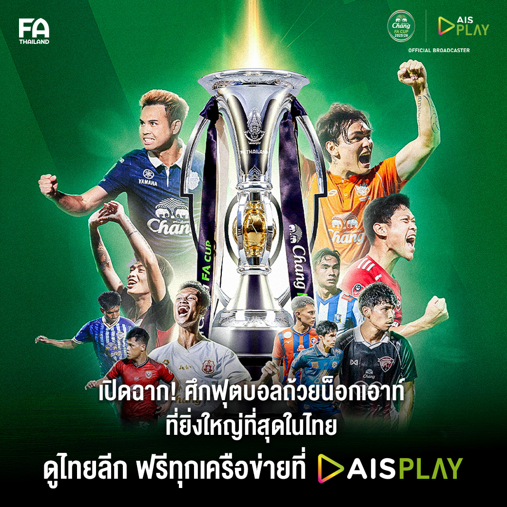 HoonSmart.com >> AIS จัดเต็มถ่ายทอดสด “ช้าง เอฟเอ คัพ 2025/26” ฟุตบอลถ้วยน็อกเอาท์ที่ยิ่งใหญ่ ที่สุดของประเทศไทย รายการที่ไม่มีเวทีให้กับผู้แพ้ รวมถึงเป็นเวทีสร้าง “แจ็คผู้ฆ่ายักษ์” โดย AIS PLAY เตรียมถ่ายทอดสดแบบจุใจ ตั้งแต่รอบคัดเลือกจนถึงรอบชิงชนะเลิศ