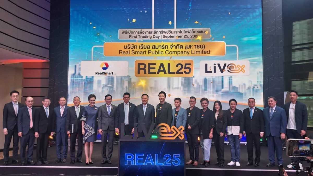 HoonSmart.com>>บริษัทเรียล สมาร์ท “REAL25” เทรดวันแรกตลาดไลฟ์เอ็กซ์เช้นจ์ เปิดที่ 25.25 บาทเพิ่มขึ้น 19.50% จากราคา IPO 21.13 บาทต่อหุ้น ตั้งเป้ารายได้-กำไรเติบโต 30% ต่อปี