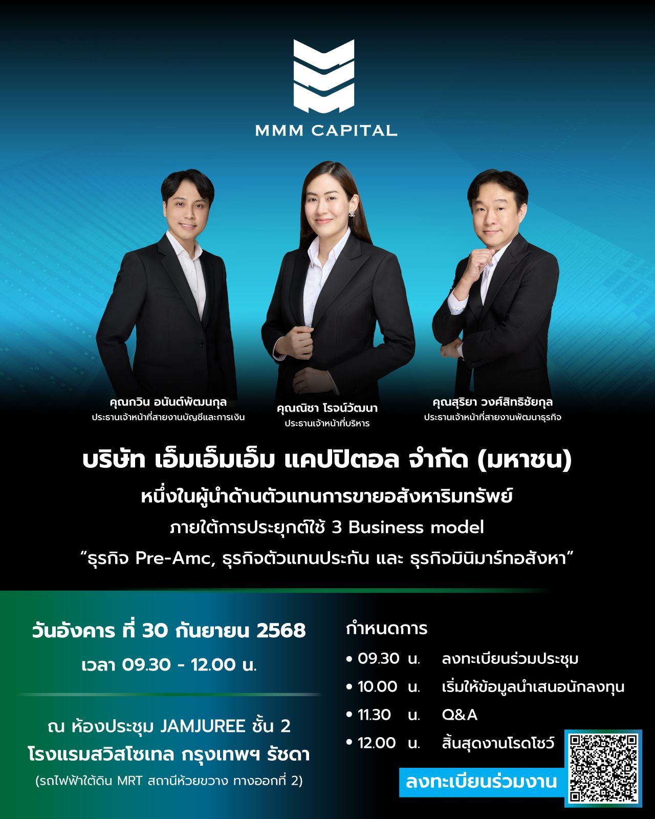 @@@ ปิดท้ายกันที่ เทศกาล IPO กลับมาคึกคัก..นักลงทุนสาย IPO ไม่ควรพลาด น้องใหม่ “MMM ” (เอ็มเอ็มเอ็ม แคปปิตอล) เปิดลงทะเบียนร่วมฟังข้อมูลโรดโชว์ บริษัทนำร่องรายแรกในตลาดไลฟ์เอ็กซ์เช้นจ์ (LiVEx) ที่ก้าวเข้าสู่ตลาด mai เร็ว ๆ นี้ ( ช้าอด..หมดสิทธิ รับของพรีเมียม )