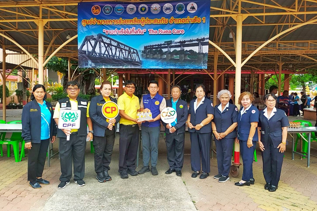 ขณะเดียวกัน นายจิระ คงเขียว ผู้ช่วยผู้อำนวยการ นำพนักงานจิตอาสาลงพื้นที่ ส่งมอบน้ำดื่ม CP และข้าวสารตราฉัตร รวมถึงยาสามัญประจำบ้านและยากั นยุงที่มีความจำเป็นอย่างยิ่ง ให้กับพี่น้องประชาชนที่อาศั ยอยู่บริเวณริมแม่น้ำป่าสัก ที่ปริมาณน้ำล้นตลิ่ง โดยเฉพาะพี่น้องชาวตำบลจำปา อำเภอท่าเรือ ร่วมบรรเทาความเดือดร้อนและช่ วยเหลือเบื้องต้น จนกว่าสถานการณ์จะคลี่คลาย
