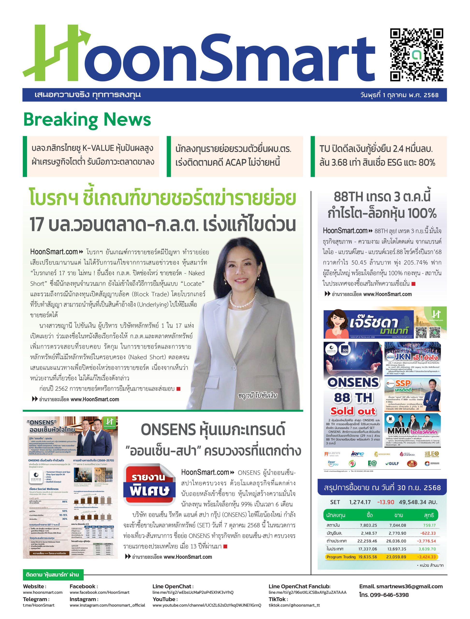 หนังสือพิมพ์ HoonSmart ปีที่ 8 ฉบับวันที่ 1 ต.ค. 2568