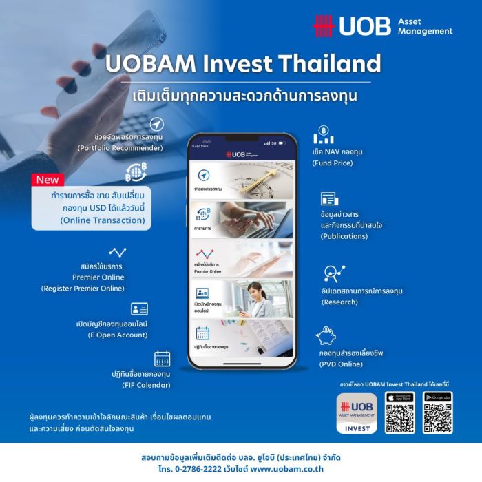 ผู้ที่สนใจสามารถสอบถามข้อมูลเพิ่มเติมหรือขอรับหนังสือชี้ชวนได้ที่ตัวแทนจำหน่าย หรือ ติดต่อ บลจ. ยูโอบี (ประเทศไทย) จำกัด โทร. 0-2786-2222 www.uobam.co.th