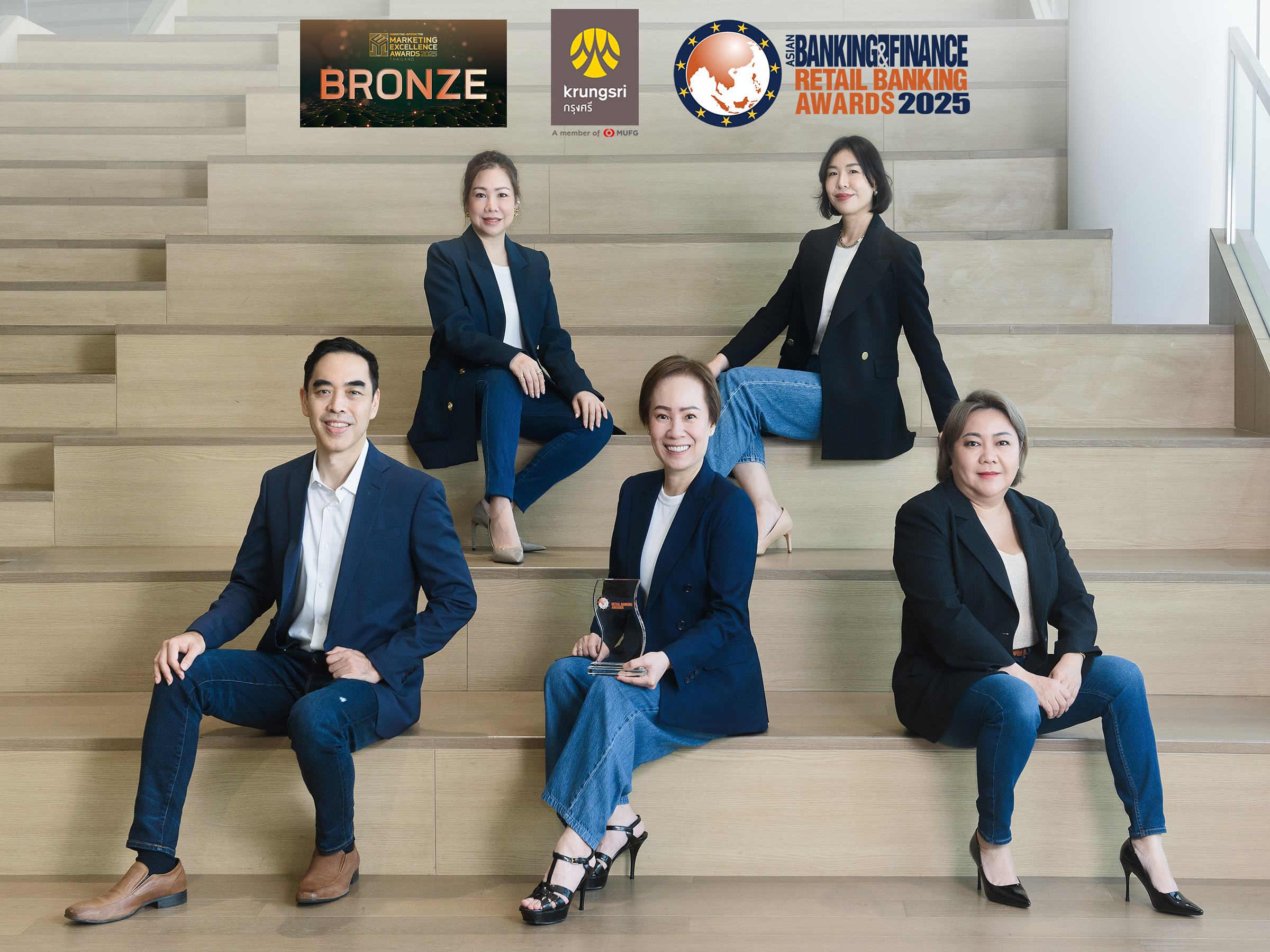 กรุงศรี โดยนางสาวมิ่งขวัญ พัฒนวงศ์ (กลาง) ผู้บริหารสายงานบริหารแบรนด์และการตลาดองค์กร ธนาคารกรุงศรีอยุธยา (BAY) พร้อมด้วยทีมผู้บริหาร รับ 2 รางวัล จากความสำเร็จของแบรนด์แคมเปญ “ชีวิตที่อยากได้ ไม่เหมือนกัน” (Simplicity for all Differences) สะท้อนความเข้าใจในความแตกต่างของลูกค้า และตอกย้ำคำมั่นสัญญาแบรนด์ “ชีวิตง่าย ได้ทุกวัน” (Make Life Simple) ได้แก่ 1) รางวัล Marketing & Brand Initiative of the Year – Thailand ต่อเนื่องเป็นปีที่ 2 จากงาน Asian Banking & Finance Retail Banking Awards 2025 ซึ่งจัดโดย Asian Banking & Finance (ABF) และ 2) รางวัล Excellence in Communications/ Public Relations (ระดับ Bronze) จาก Marketing Excellence Award 2025 – Thailand ซึ่งจัดโดย Marketing Interactive