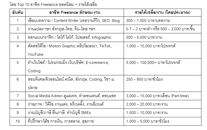 อาชีพ Freelance ที่ มนุษย์เงินเดือนนิยมทำมากที่สุด