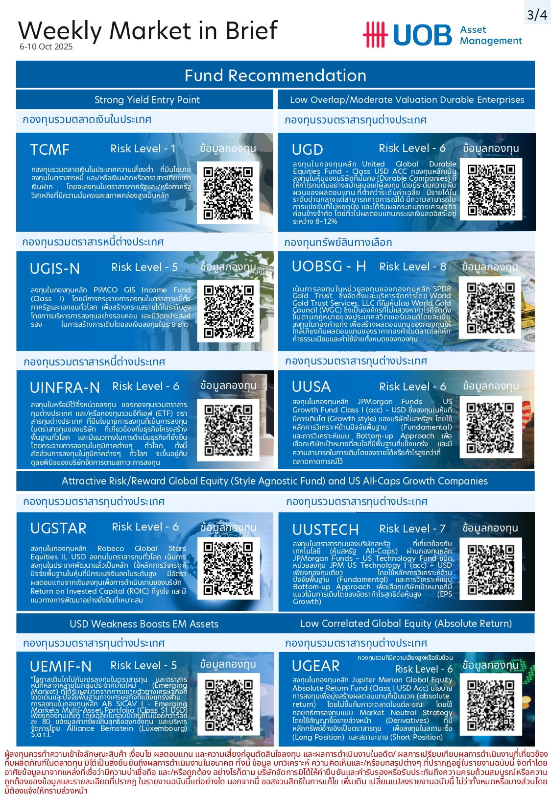 UOBAM Weekly Market in Brief : ตลาดยังคงยืดหยุ่น แม้รัฐบาลสหรัฐฯ ซัตดาวน์ 06/10/2025 14:16009Breaking News, Fund ManagerUOBAM Facebook iconFacebookTwitter iconTwitterLINE iconLine