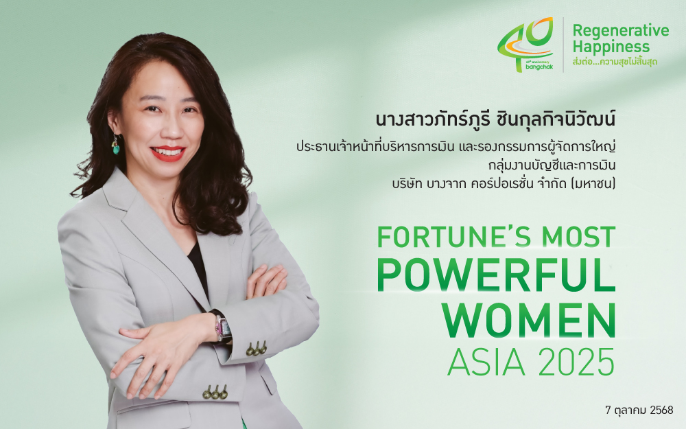นางสาวภัทร์ภูรี ชินกุลกิจนิวัฒน์ ประธานเจ้าหน้าที่บริหารการเงิน และรองกรรมการผู้จัดการใหญ่ กลุ่มงานบัญชีและการเงิน บริษัท บางจาก คอร์ปอเรชั่น จำกัด (มหาชน) ได้รับการประกาศรายชื่อให้เป็นหนึ่งใน Fortune’s Most Powerful Women Asia 2025 ซึ่งเป็นการจัดอันดับสตรีผู้ทรงอิทธิพลในภูมิภาคเอเชีย-แปซิฟิก จัดโดยฟอร์จูน (Fortune) สื่อธุรกิจชั้นนำระดับโลก จากบทบาทสำคัญในการบริหารการเงิน สร้างความแข็งแกร่งทางการเงิน สนับสนุนการเติบโตและขับเคลื่อนธุรกิจของกลุ่มบริษัทบางจาก ที่มีการขยายธุรกิจเเละเติบโตอย่างต่อเนื่อง และนับเป็นปีที่ 2 ที่นางสาวภัทร์ภูรีได้รับเกียรติในทำเนียบดังกล่าว โดยเป็น 1 ใน 8 ผู้บริหารสตรีชาวไทย และ 1 ใน 7 CFO (Chief Financial Officer) ของเอเชียที่ได้รับการจัดอันดับครั้งนี้