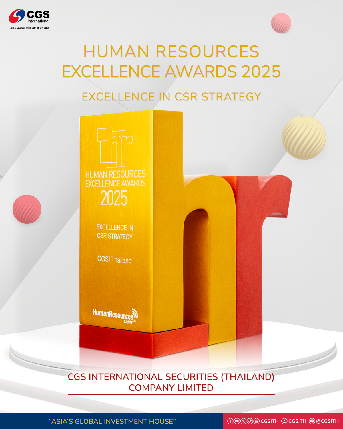 บริษัทหลักทรัพย์ ซีจีเอส อินเตอร์เนชั่นแนล (ประเทศไทย) หรือ CGSI ได้รับรางวัล Gold สาขา Excellence in CSR Strategy จากงาน HR Excellence Awards Thailand 2025 สะท้อน การดำเนินงานของบริษัทที่มุ่งมั่นรับผิดชอบต่อสังคมอย่างมีประสิทธิภาพ